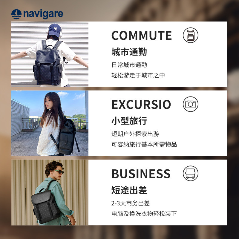 Navigare(纳维凯尔)意大利小帆船双肩包,融合意式优雅与实用功能,专为都市男性设计。采用高品质防泼水面料,轻盈耐磨,搭配精致帆船元素装饰,彰显低调品味。包内分区合理,设有独立电脑隔层(适配15.6英寸笔记本)、文件袋及多功能收纳仓,满足商务通勤与短途旅行需求。加宽透气肩带与背部缓冲设计,长时间背负舒适不勒。简约流畅的线条与经典配色,轻松驾驭职场、差旅或日常出行场景,是追求品质与功能兼具的男士理想之选。