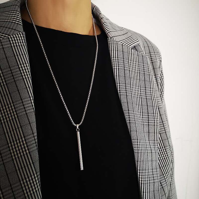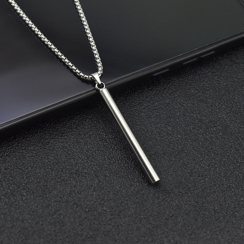 淘宝钛钢长棒吊坠项链简约个性校园百搭男女时尚小众棍子项链卫衣链
