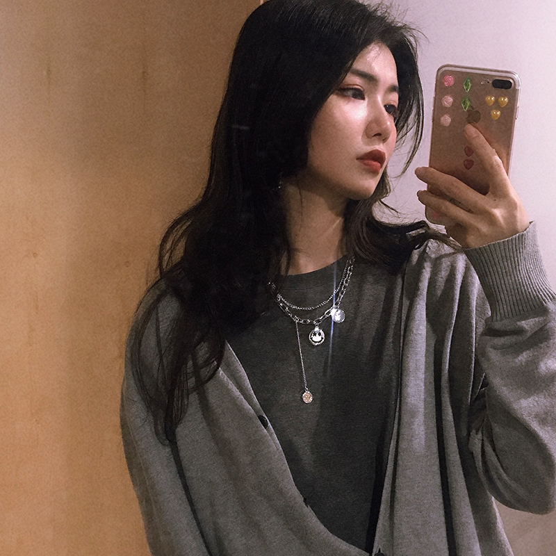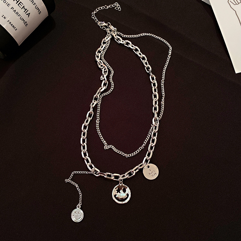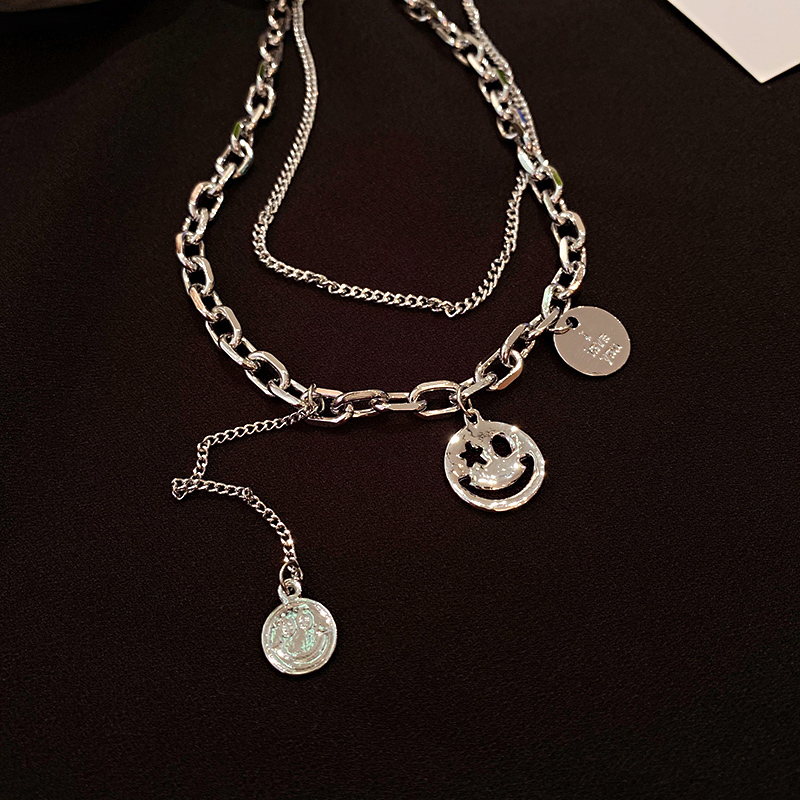淘宝t恤卫衣笑脸项链项链甜酷辣妹风配饰女轻奢小众装饰锁骨链毛衣链