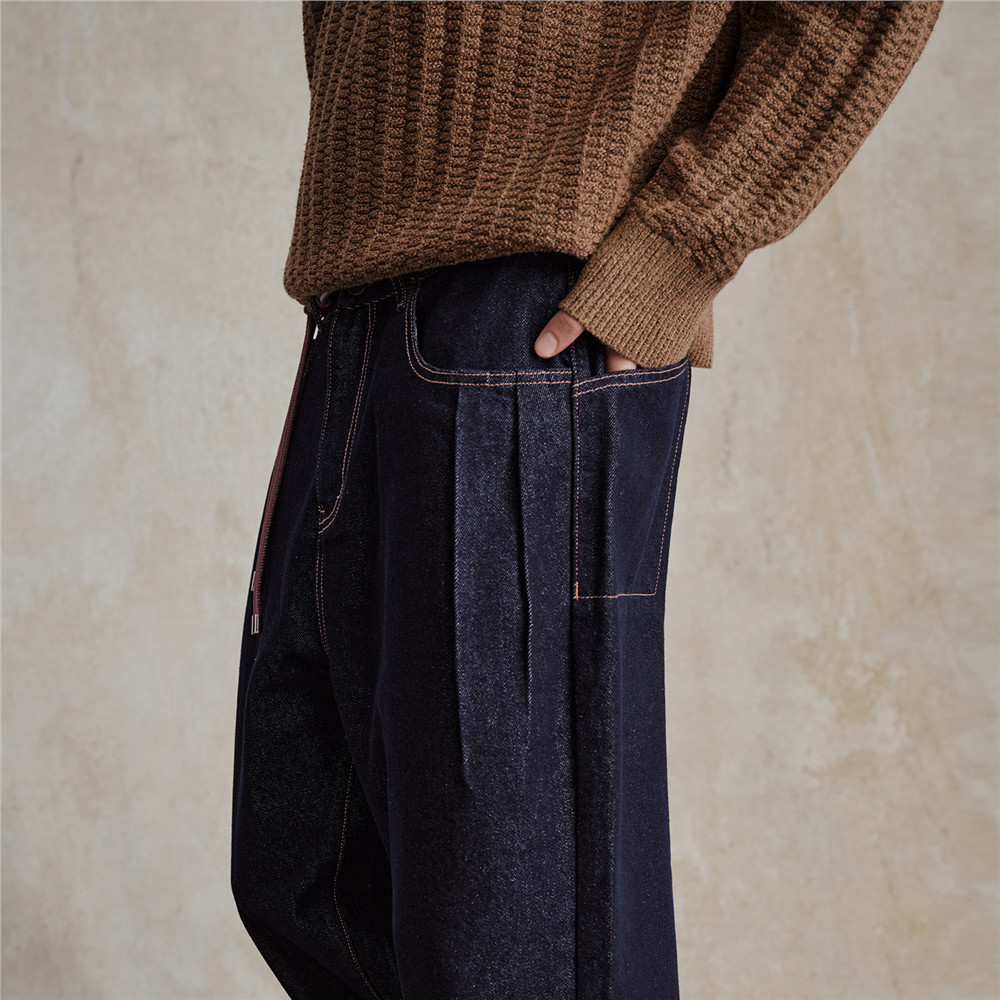 日系复古阔腿长裤宽松直筒小脚哈伦裤子男式大码牛仔裤青年灯笼裤