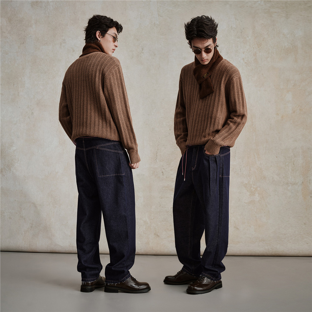 天猫设计师款佐丹奴裤子男装洗水明线中腰宽松直筒原色牛仔裤18115704