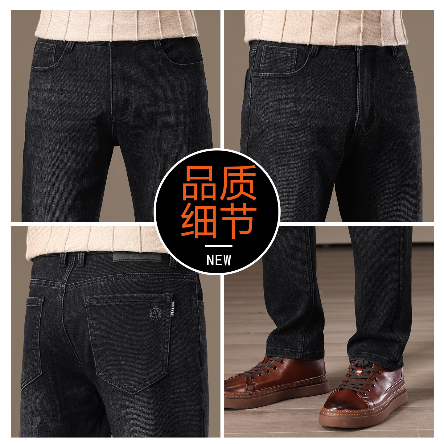 淘老爷车牛仔裤男士秋冬厚款中老年男裤直筒宽松爸爸弹力休闲长裤子