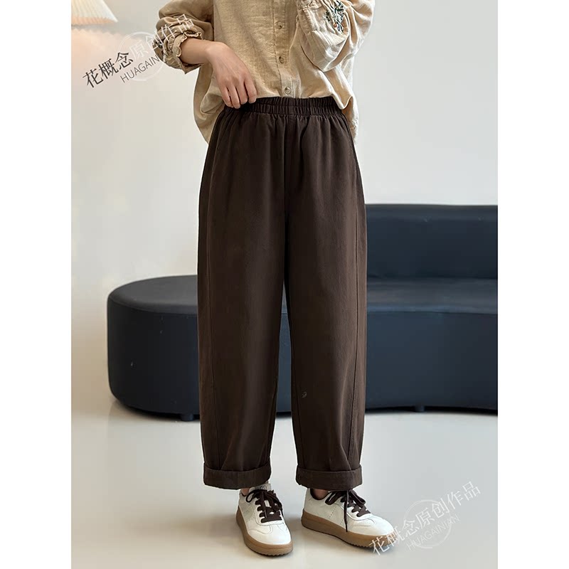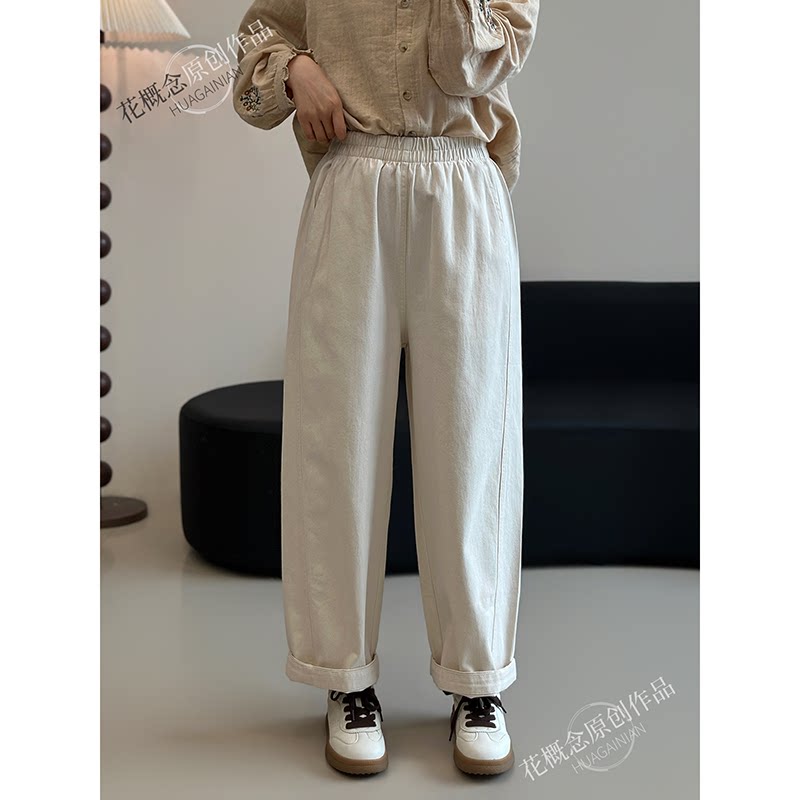 天猫花概念纯棉气球裤亲肤挺阔版松紧腰宽松裤子日系简约百搭休闲女裤