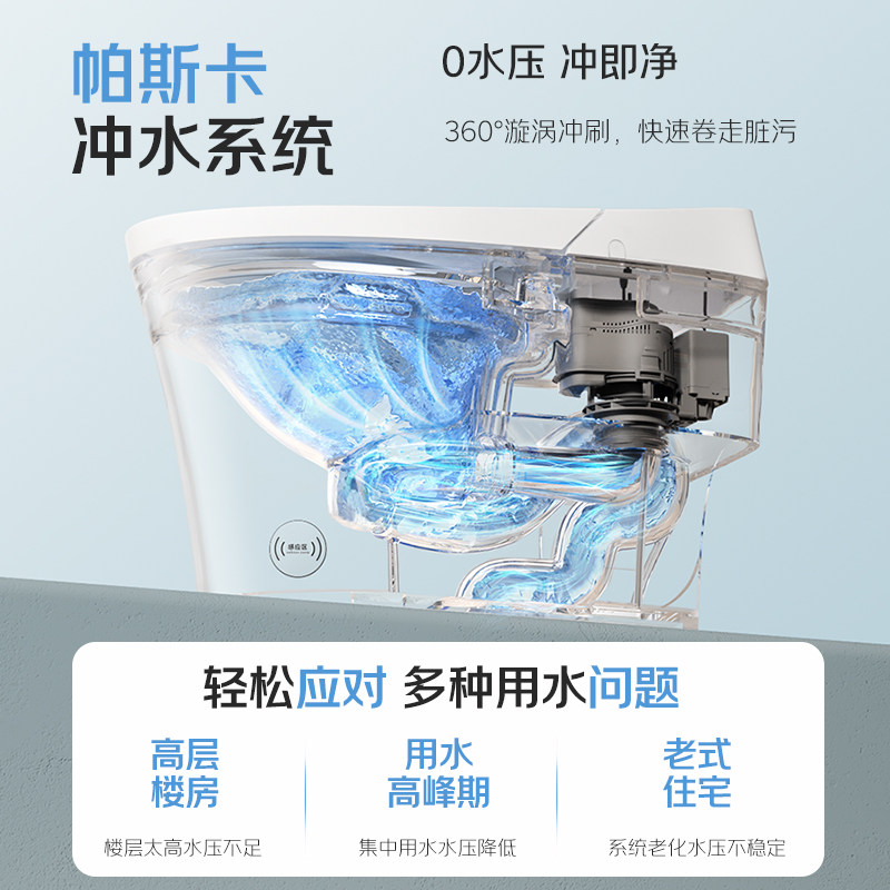 天恒洁轻智能马桶水箱零压脚感冲水泡沫盾家用小户型坐便器i300
