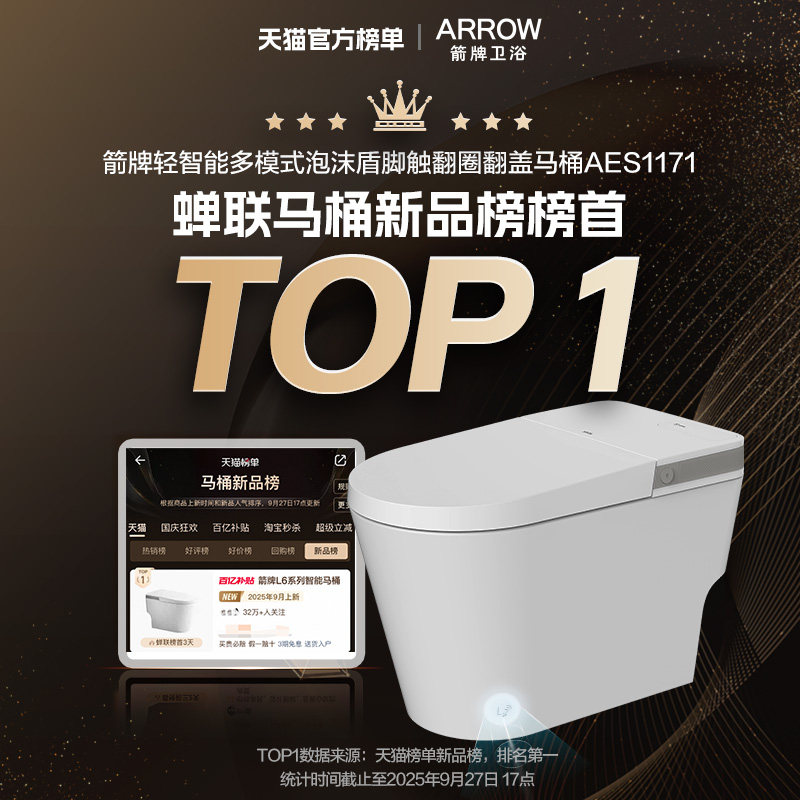 天猫【百亿三重补贴】箭牌官方旗舰双泵增压大冲力泡沫盾轻智能马桶