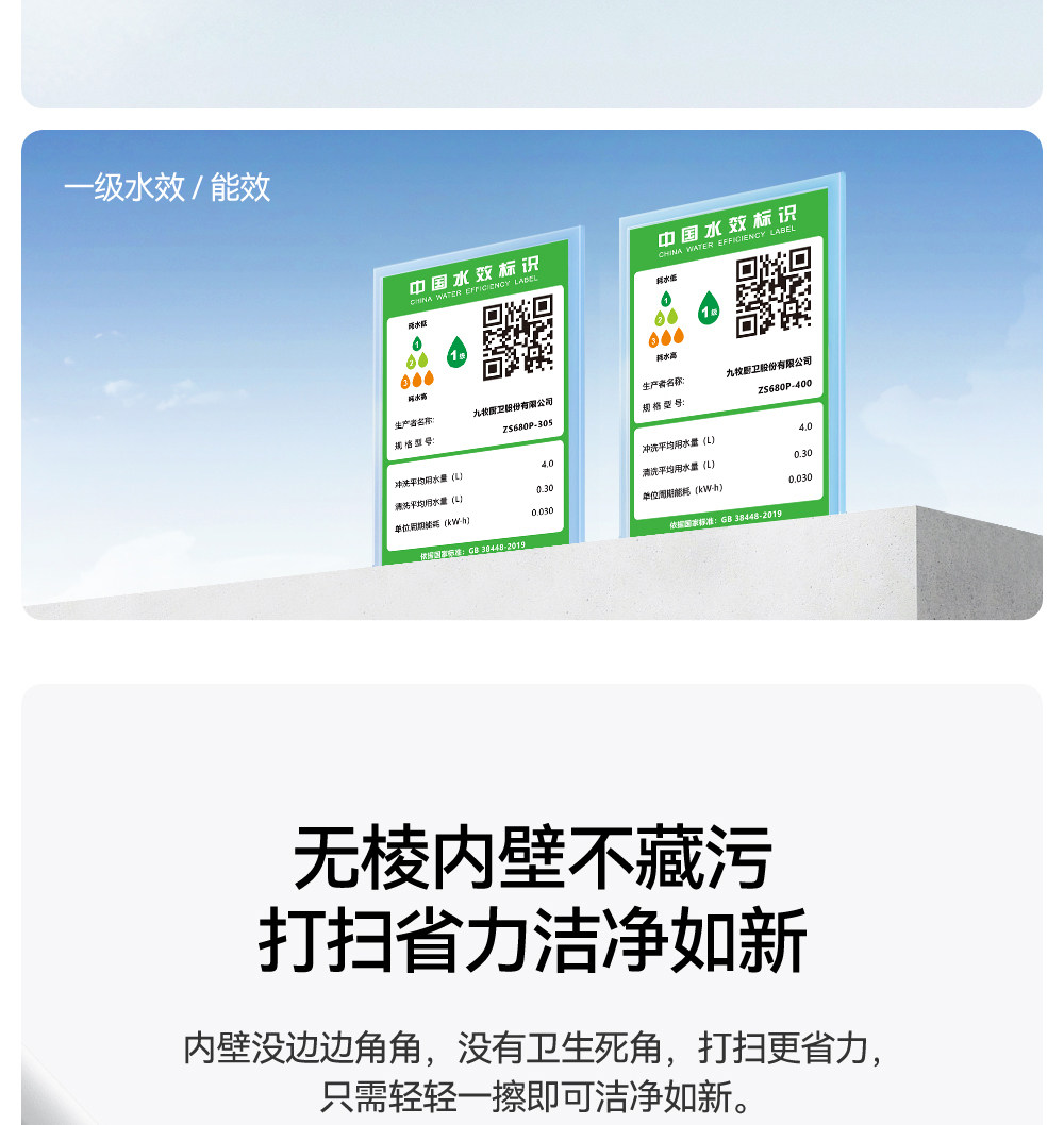 【新品】九牧轻智能马桶零压脚感家用虹吸防臭马桶坐便器SQ6451
