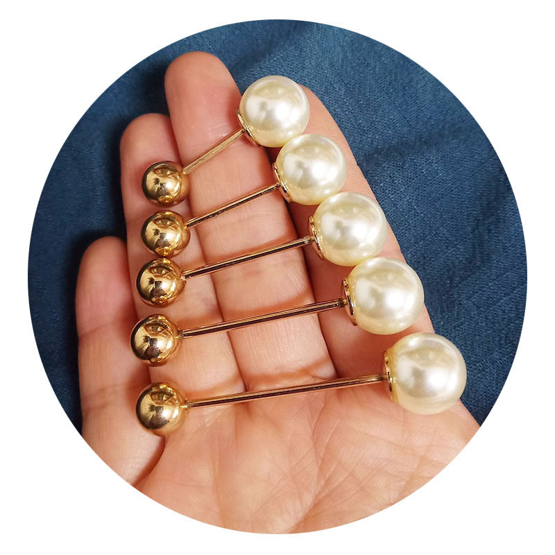 淘女高档西装双头珍珠一字插针防走光别针胸针衬衫小针袖扣装饰配饰