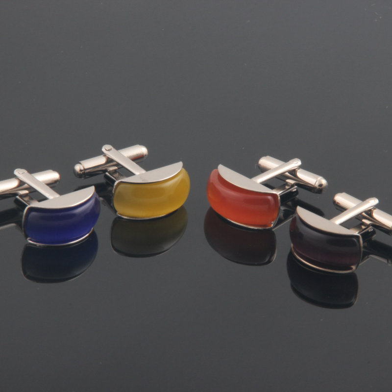 淘宝优质法式袖扣袖口袖钉 女士cufflinks 猫眼石袖扣 多色半弧形猫眼
