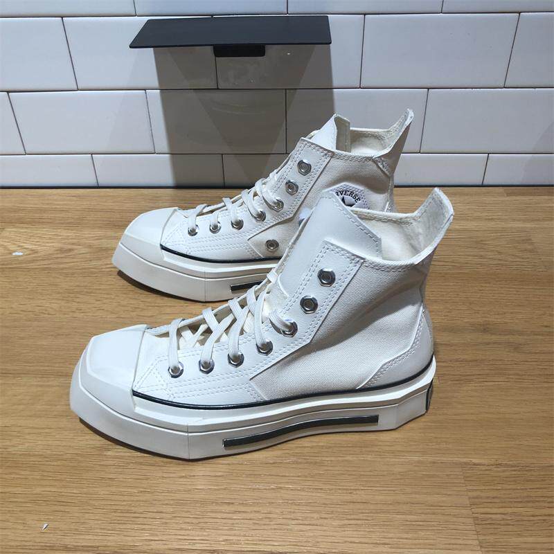 CONVERSE匡威CHUCK 70几何拼接感高帮帆布鞋(A06435C)融合经典复古与现代设计,以高帮轮廓搭配厚底增高设计,兼顾潮流与舒适。鞋面采用多材质几何拼接工艺,帆布与质感皮革碰撞,层次丰富,视觉冲击力强。经典Chuck Taylor鞋型升级,搭配加厚橡胶大底,有效提升身高,行走更稳。内里加绒处理,保暖透气,四季皆宜。男女同款设计,适配多种穿搭风格,无论是街头风还是休闲造型都能轻松驾驭。A06435C以其独特拼接美学与实用增高功能,成为追求个性与舒适并重的时尚之选。