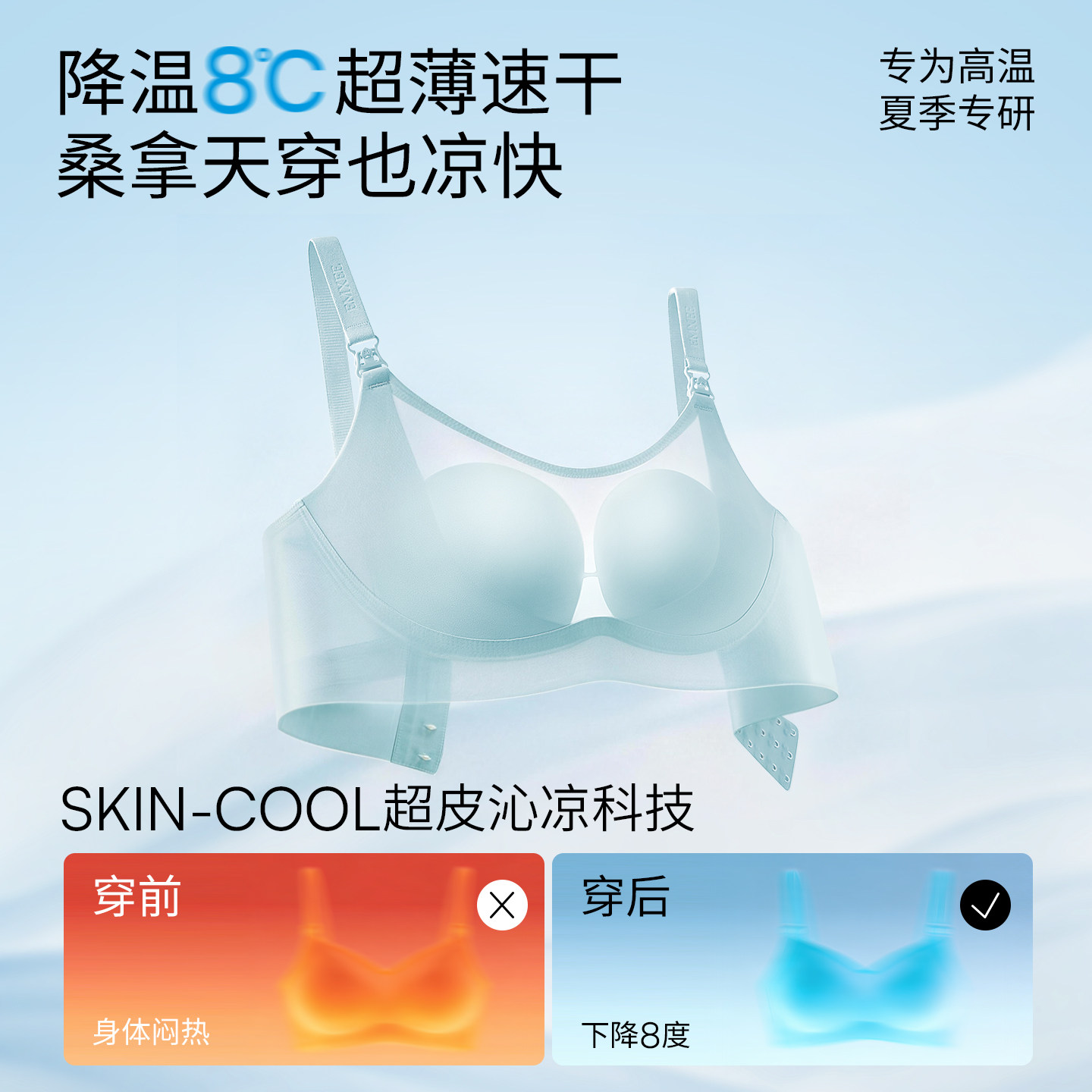 【新品上市】嫚熙超皮小凉杯哺乳内衣,专为孕期及产后妈妈贴心设计。采用高弹超皮面料,柔软亲肤、透气排汗,四季穿着清爽舒适。独特小凉杯结构承托力强,有效预防胸部下垂,塑形更自然。前开扣设计,单手即可轻松哺乳,便捷实用。加宽侧边与肩带,分散压力,提升支撑力,缓解孕期胀痛。无钢圈设计,零束缚感,睡眠也可安心穿着。精致蕾丝点缀,兼顾美感与实用性,让妈妈在特殊时期依然自信优雅。无论是孕期日常、产后恢复还是哺乳期,都是贴心之选。嫚熙,用专业守护每一位妈妈的健康与美丽。
