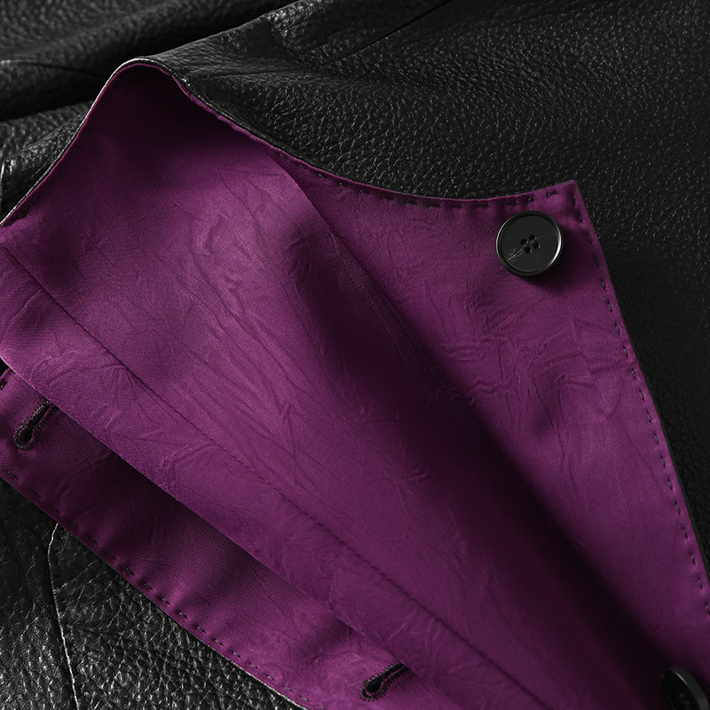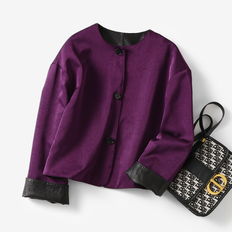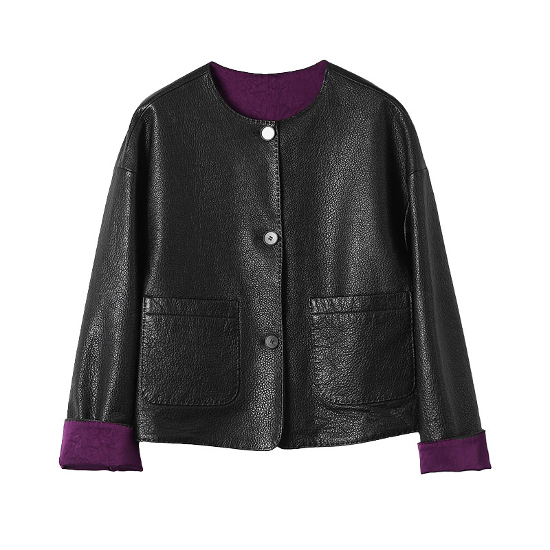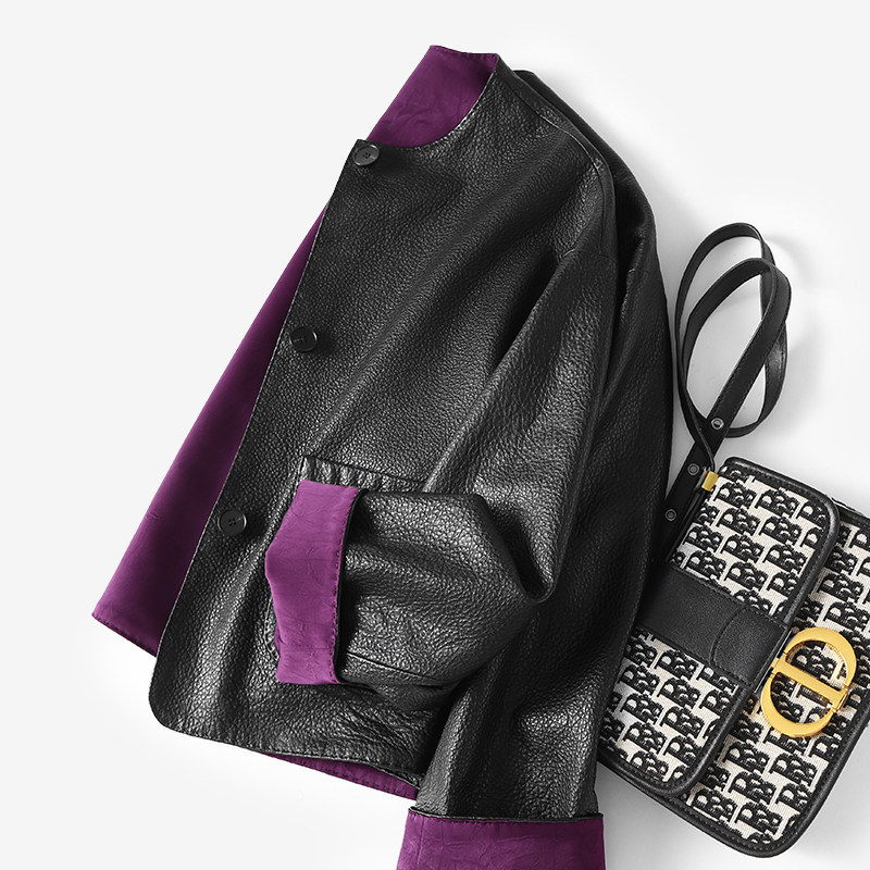 淘宝淘么淘 典藏之作 撞色双面穿荔枝纹山羊皮贵气紫真皮皮衣外套新款