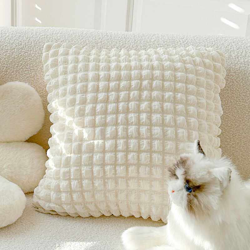 淘法式中古小香风简约纯色格子抱枕靠垫客厅卧室床头装饰腰靠枕头套