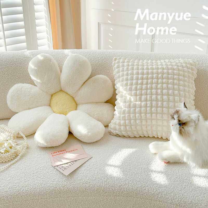 淘宝ins风兔绒太阳花奶油泡芙客厅沙发抱枕靠垫八瓣花靠枕抱枕套坐垫