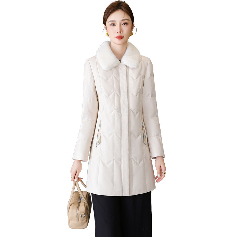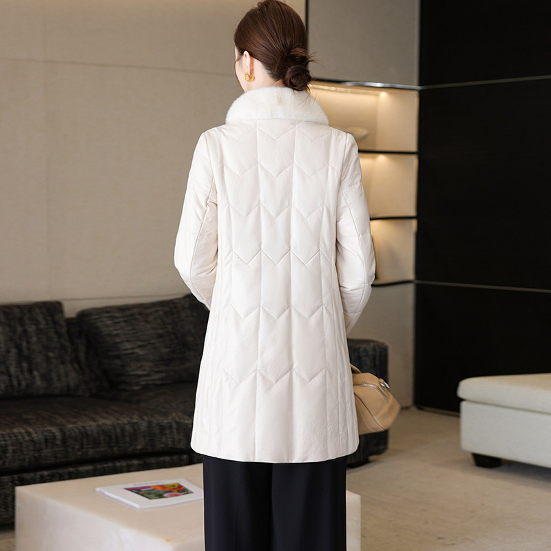 天猫绵羊皮真皮羽绒服女中长款皮衣保暖修身国风水貂毛领皮草外套冬季