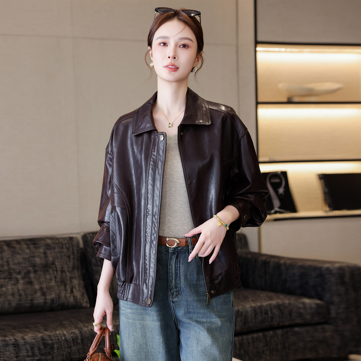 2025年秋冬新款真皮皮衣女款,精选优质油蜡绵羊皮打造,质感细腻、光泽自然,兼具防风保暖与时尚格调。宽松休闲版型设计,包容性强,轻松穿出随性慵懒风;短款剪裁拉长腿部比例,凸显身材曲线。经典翻领搭配金属拉链,细节精致,彰显品质。油蜡工艺赋予皮衣独特复古韵味,随穿着时间推移更显个性光泽。无论是搭配牛仔裤、连衣裙或半身裙,都能轻松驾驭多种风格,成为秋冬衣橱的百搭爆款。兼具舒适度与潮流感,是追求品质与时尚女性的理想之选。