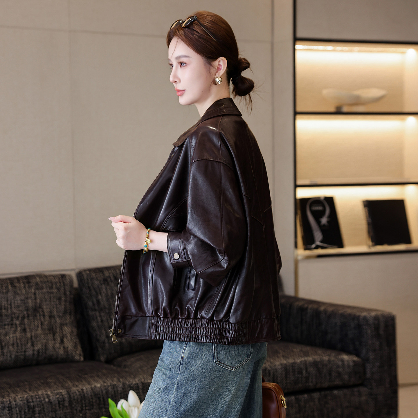 2025秋新款甜酷宋佳同款绵羊皮真皮皮衣短皮外套女收腰显瘦皮夹克