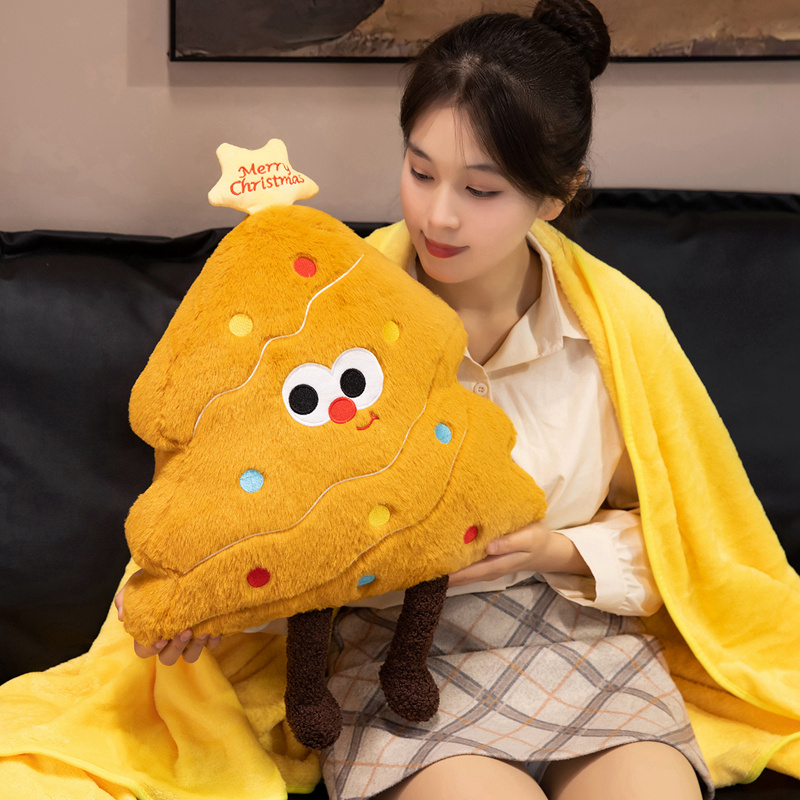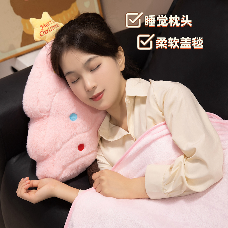 天猫可爱圣诞树抱枕毯子二合一沙发客厅靠枕汽车抱枕被办公室靠垫礼物