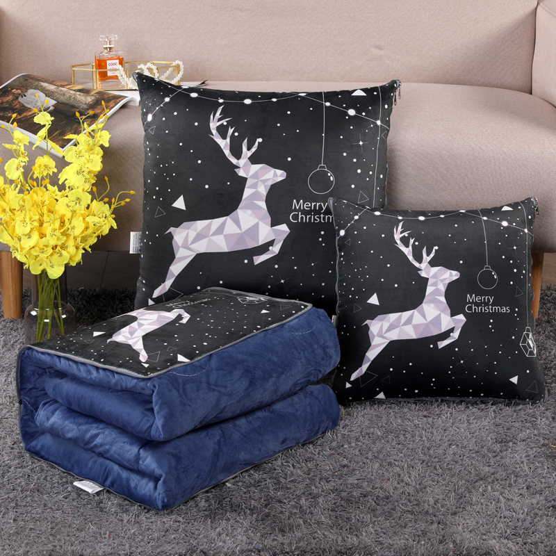 原创手提便携盖毯办公室午休毛毯披肩车载靠垫抱枕被毯子两用礼物