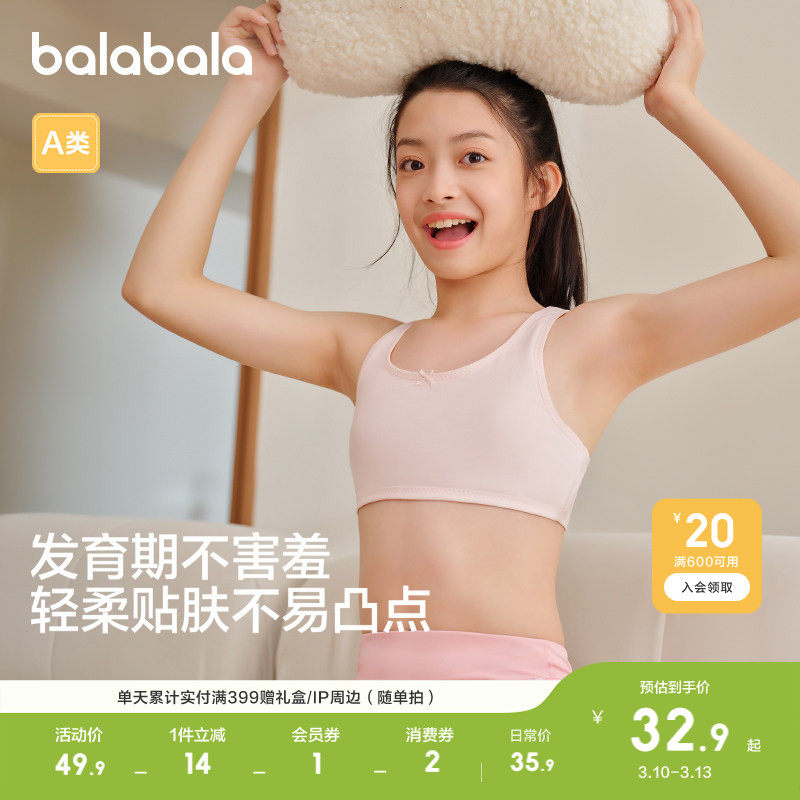 天猫巴拉巴拉儿童女童内衣发育期少女文胸胸衣背心无痕防凸点学生中童