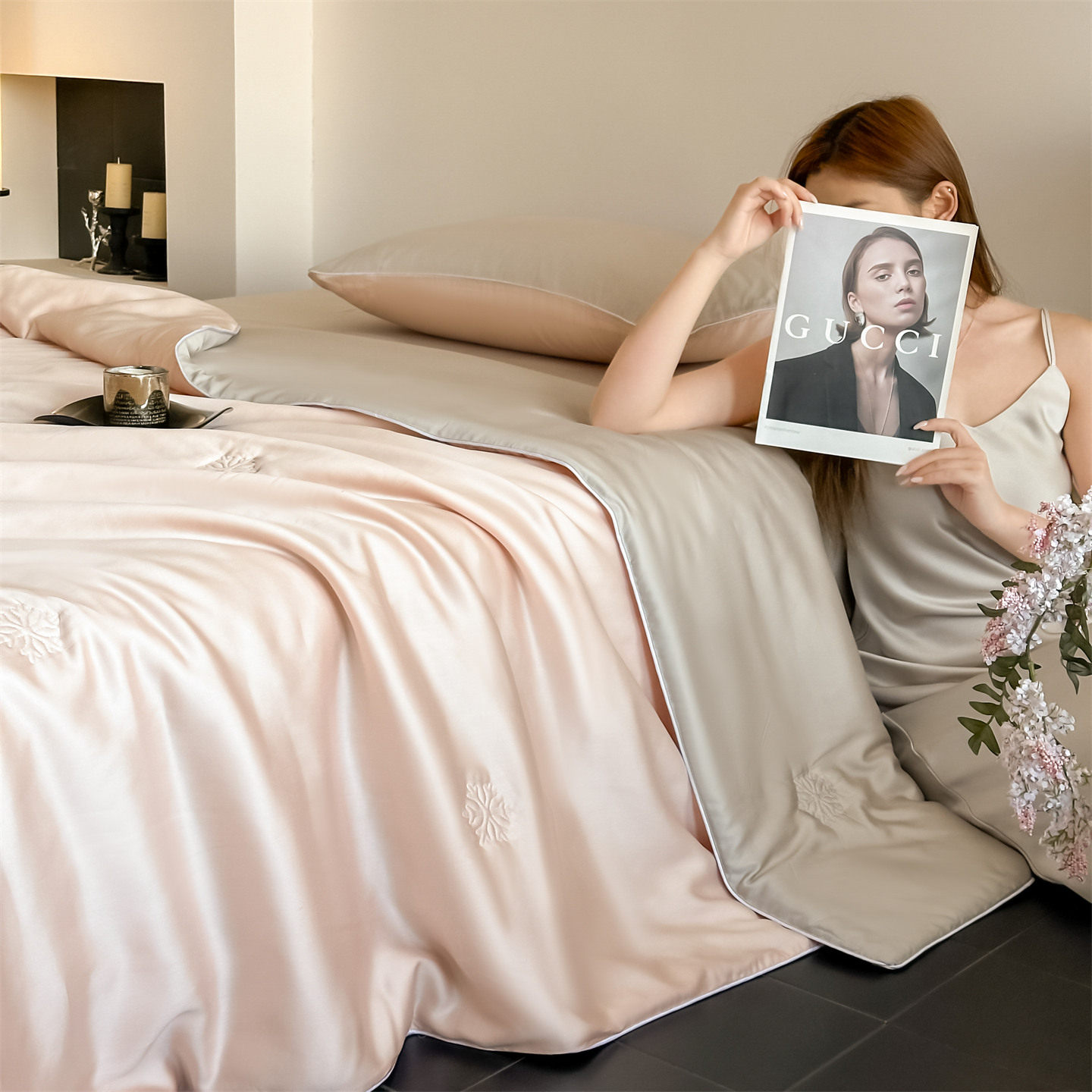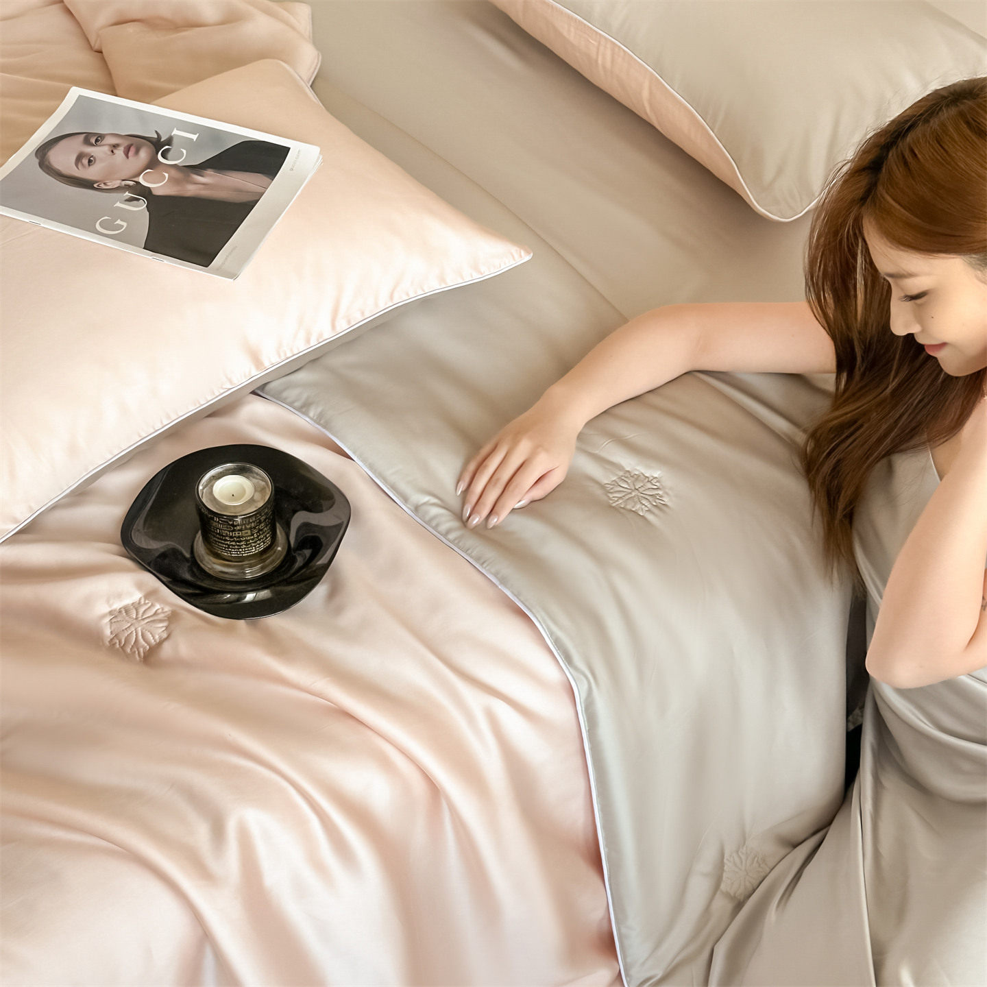 淘宝夏季水洗真丝刺绣夏被四件套单双人学生空调被可机洗夏凉被薄被子
