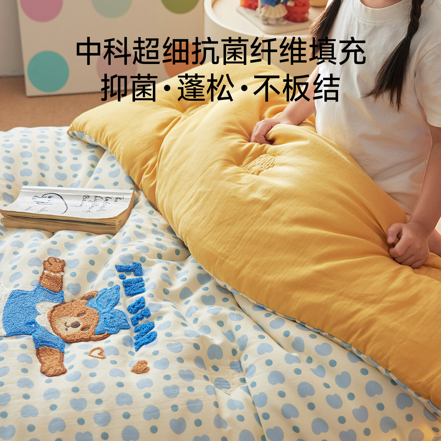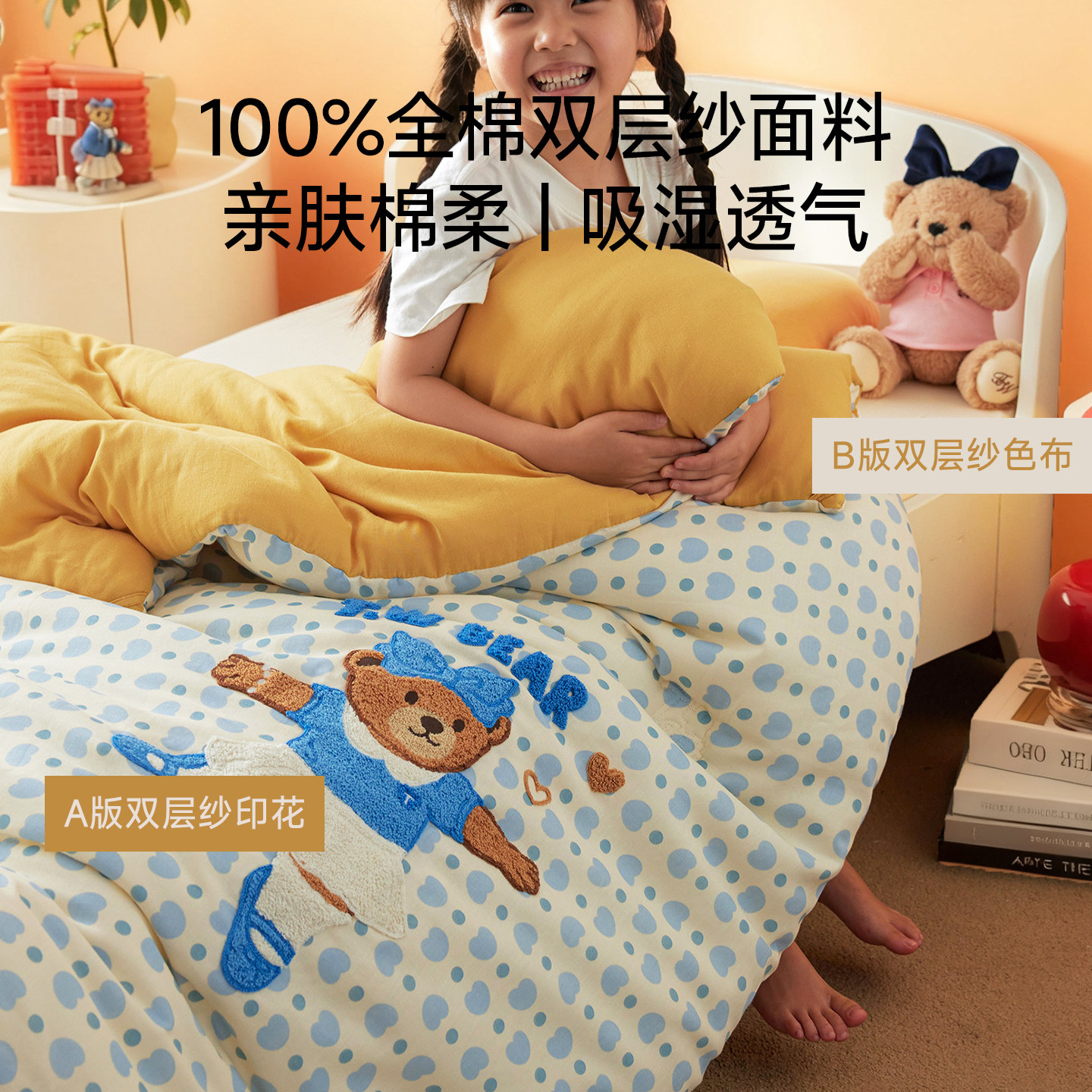 天猫TW小熊A类全棉儿童保暖被子冬被100纯棉双层纱被芯单双人春秋被褥