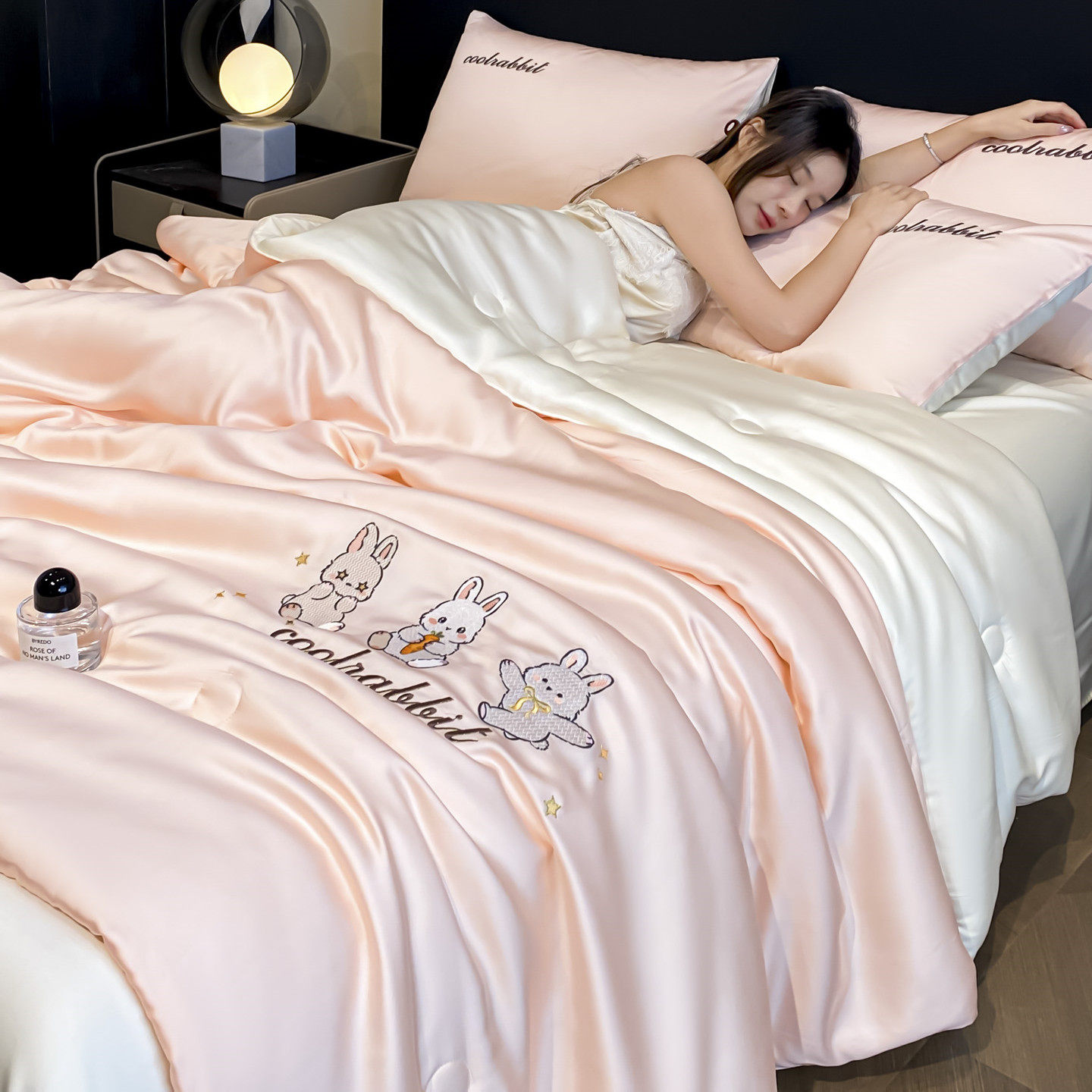 淘宝水洗真丝冰丝刺绣夏被四件套单双人学生空调被可机洗夏凉被薄被子