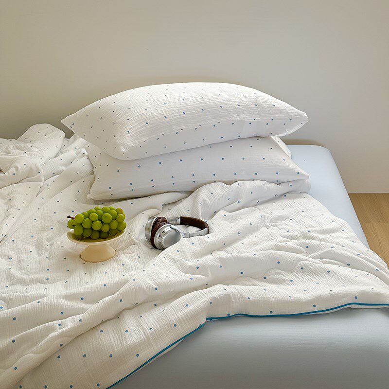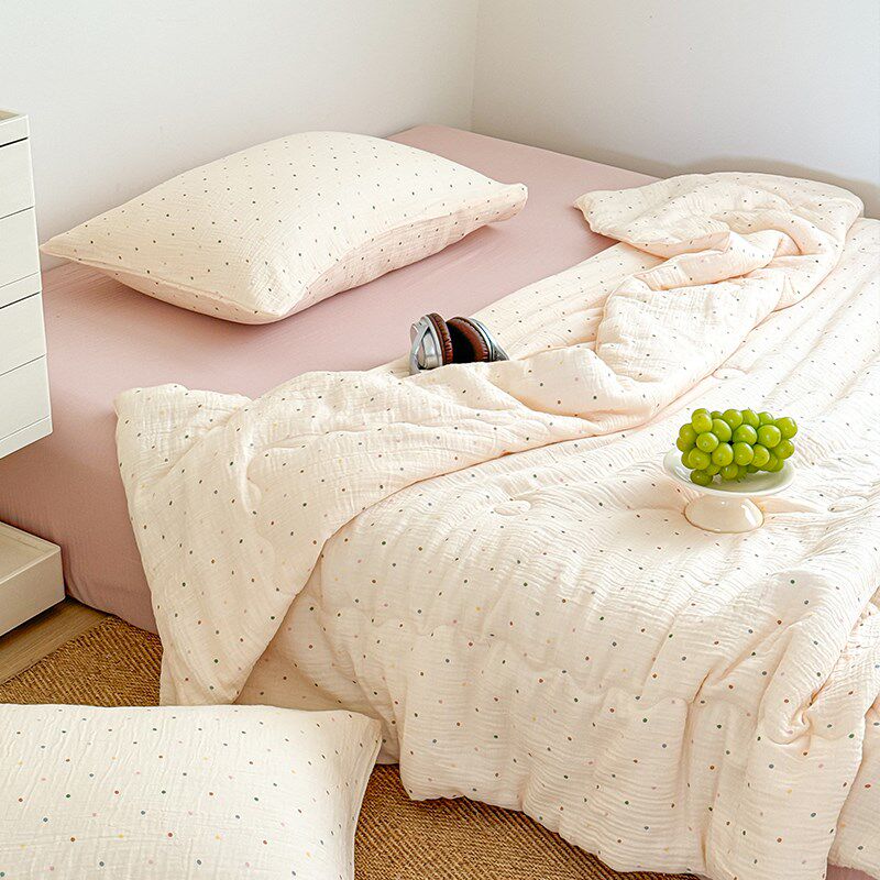 淘宝在耳边ins波点全棉双层皱皱纱夏凉F被简约夏季可水洗薄被子空调被