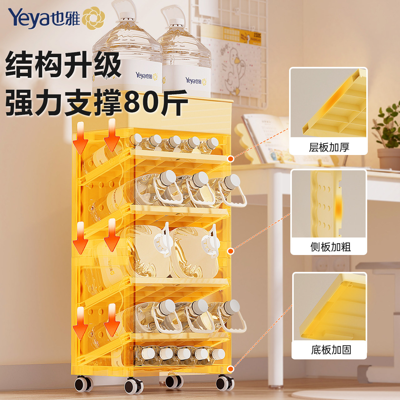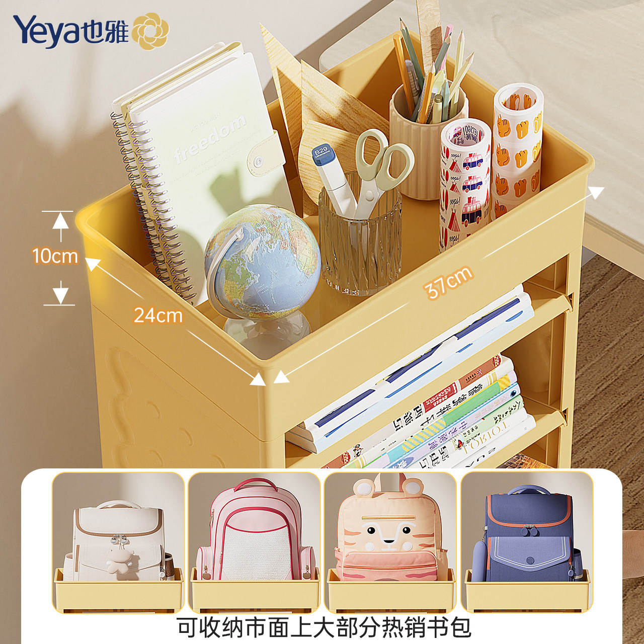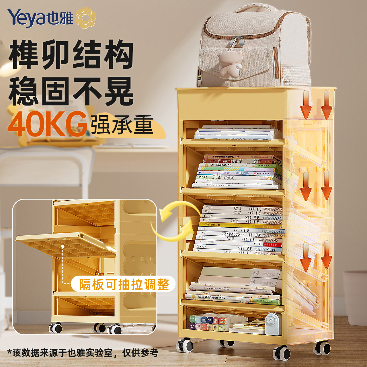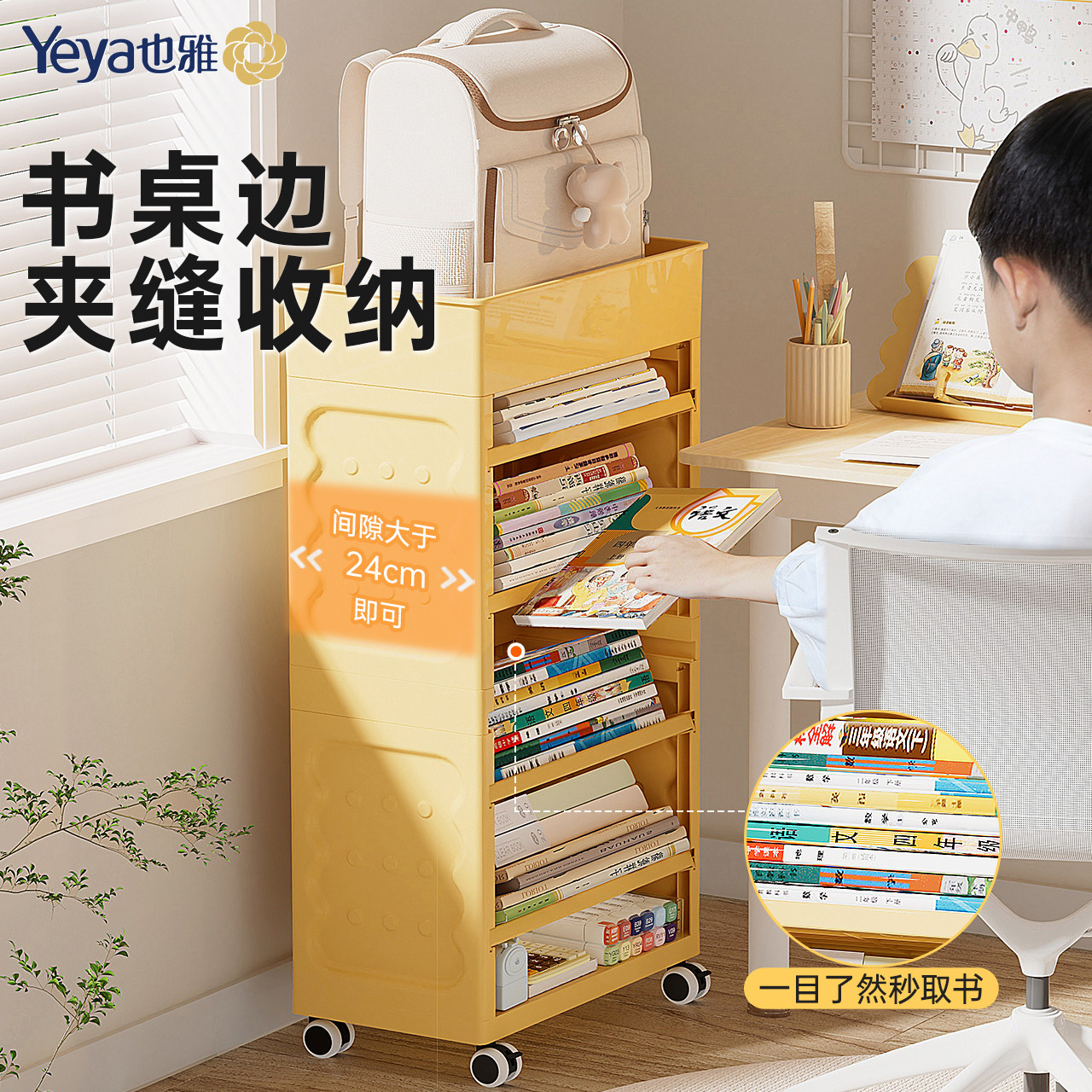 天猫也雅儿童书架书桌下侧边收纳落地书包置物架家用可移动书本收纳架