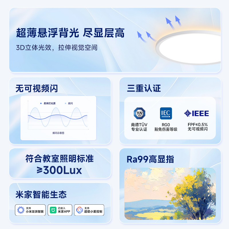 天猫yeelight易来超薄吸顶灯全光谱护眼客厅卧室书房智能灯具纤云