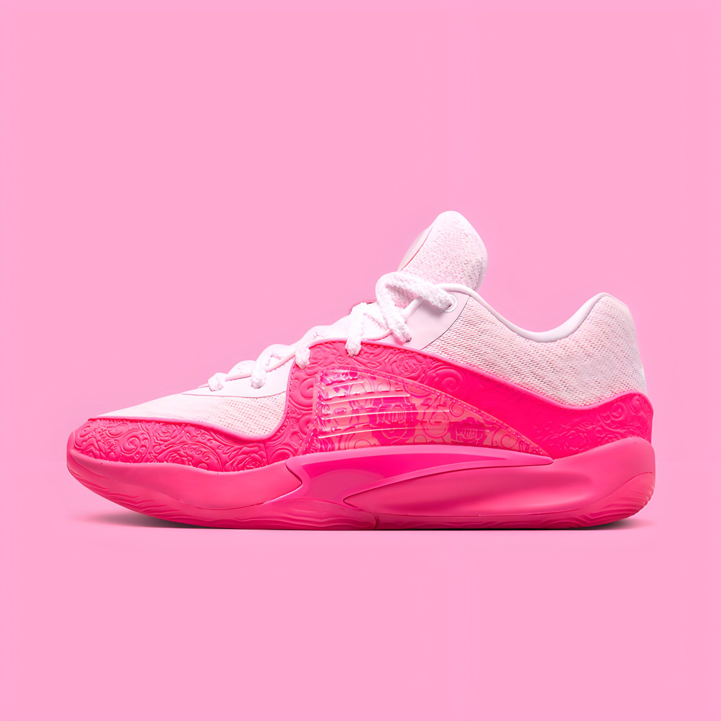 KD16篮球男鞋是耐克为NBA巨星凯文·杜兰特打造的第16代签名战靴,专为全能型球员设计。本次推出的全明星配色融合了“乳腺粉”“小丑黑”“武士紫”等大胆撞色,视觉冲击强烈,彰显个性与潮流态度。鞋身采用轻量化工程网布与热熔材质结合,提供出色包裹与透气性。中底搭载全掌Zoom Air气垫,响应迅速,缓震性能卓越,助力场上爆发与灵活变向。外底以多向纹路设计,增强抓地力,适合室内外多种场地。KD16不仅性能出众,更将篮球文化与街头美学完美融合,是实战与穿搭的理想之选。