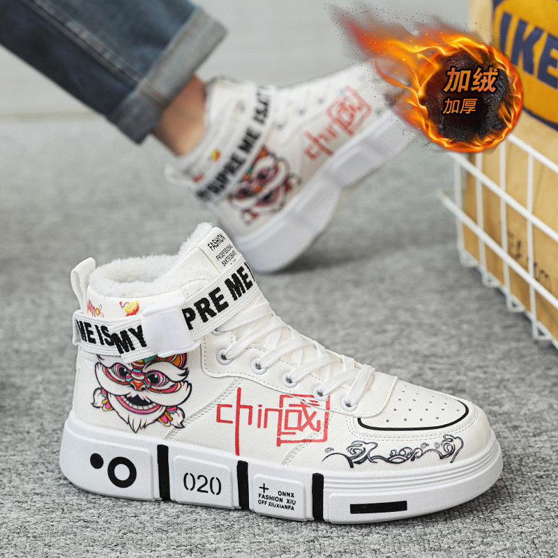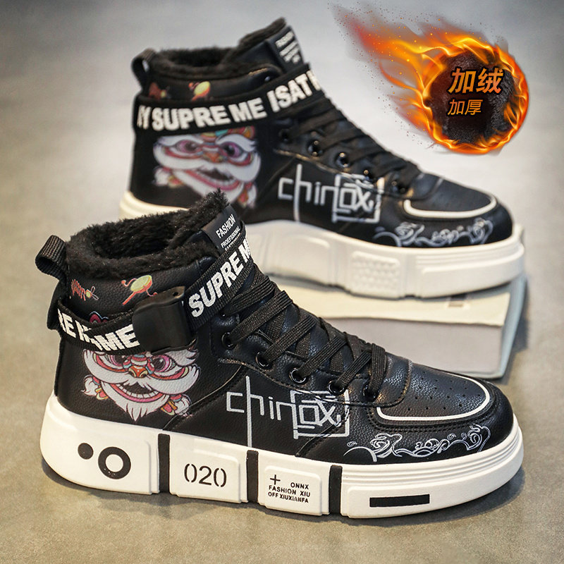 高帮男鞋冬季加绒棉鞋高帮厚底篮球运动鞋青少年跑步增高老爹潮鞋