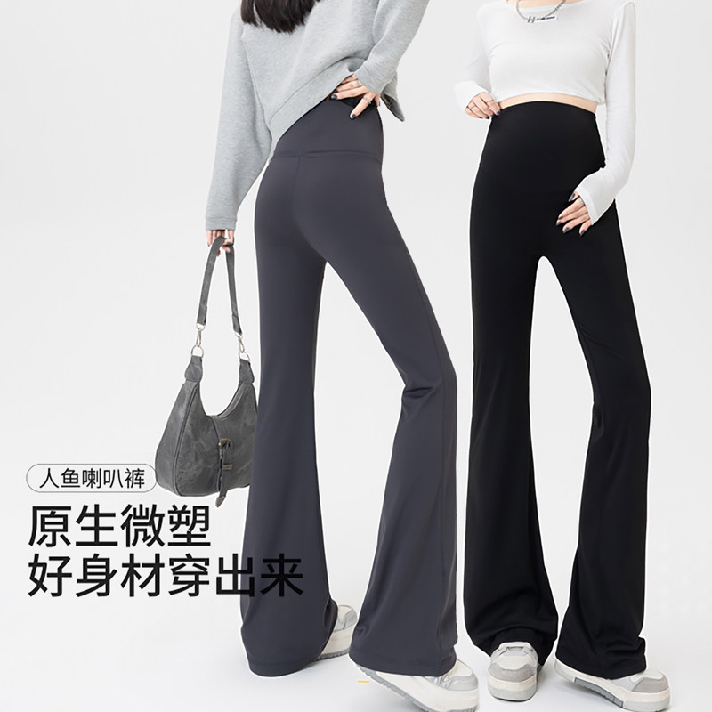 天猫孕妇裤子外穿托腹不勒肚子不掉档喇叭鲨鱼打底裤时尚春秋春装春款