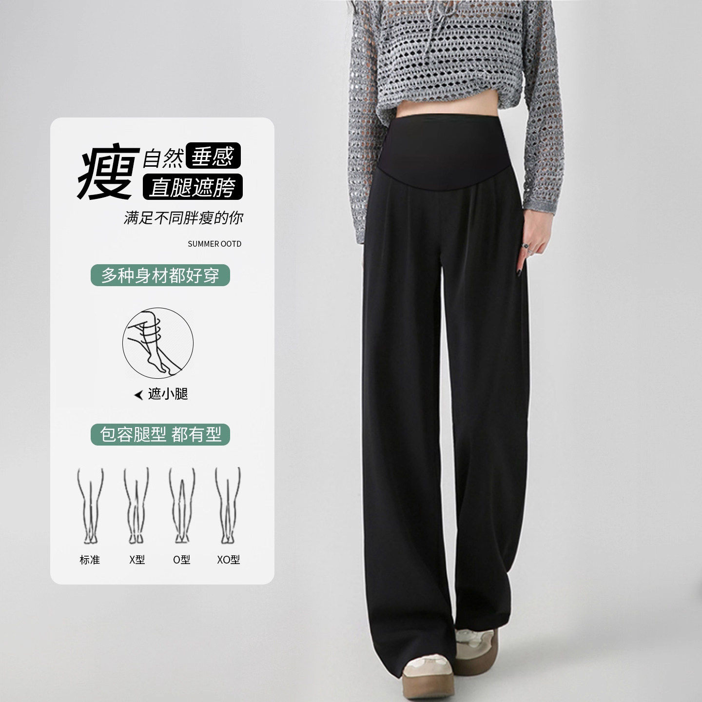 孕妇裤夏季2026新款孕期不勒肚子可调节薄款外穿灰色垂感西装裤女