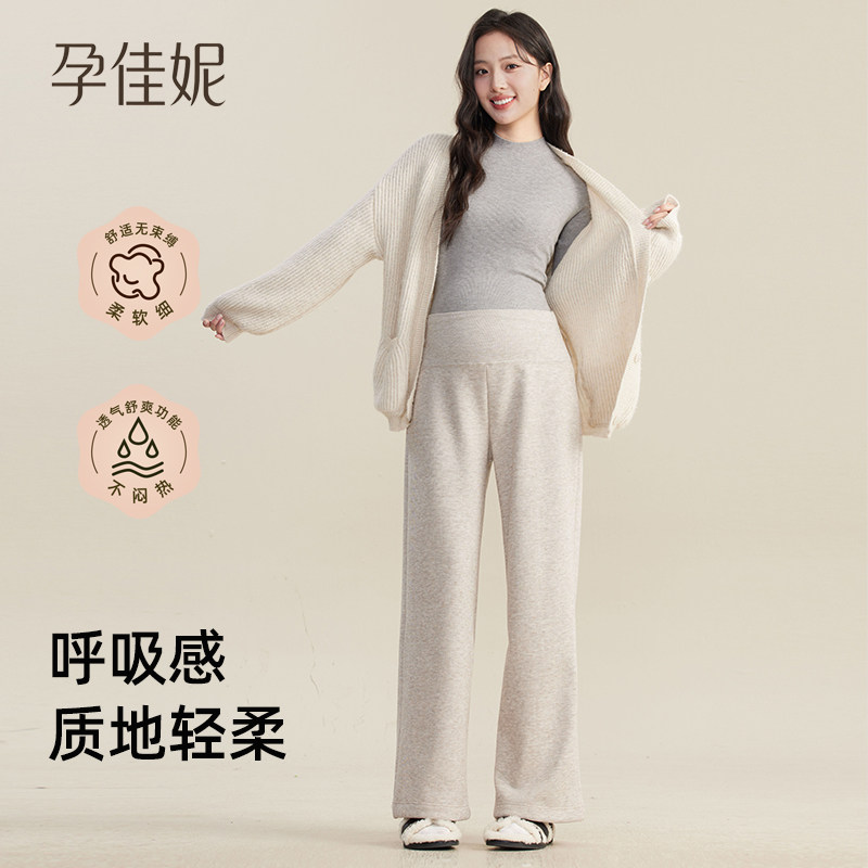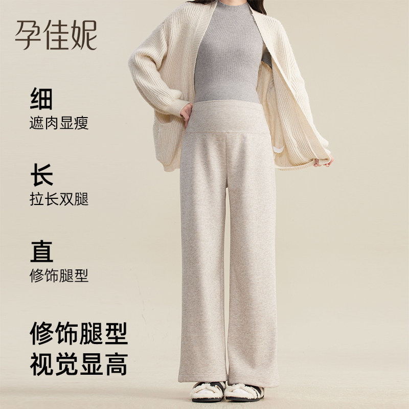 天猫孕佳妮孕妇裤子秋冬外穿直筒阔腿裤2026新款冬加绒保暖宽松休闲裤