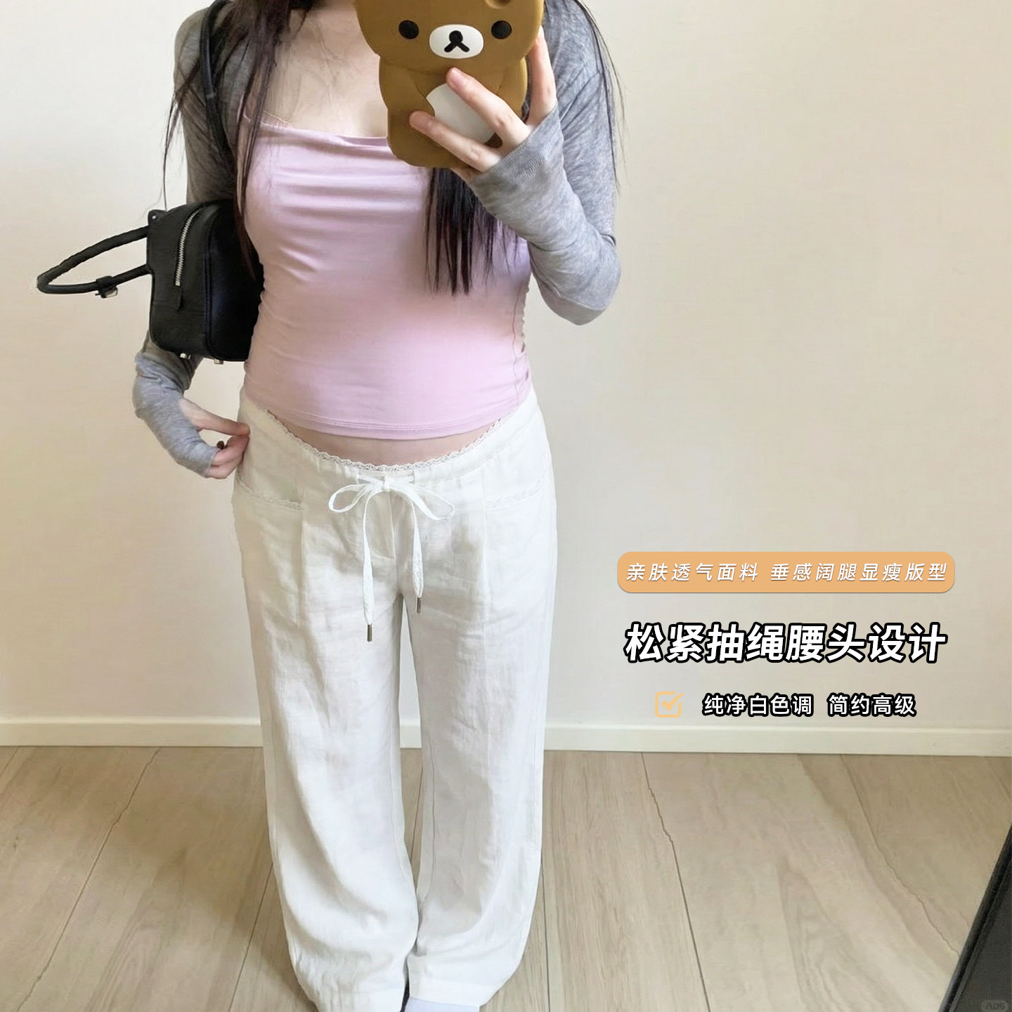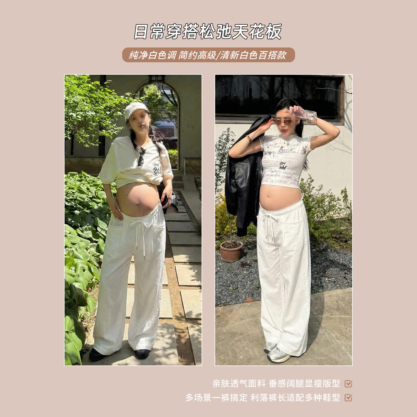 淘宝ellieluke孕妇裤春夏款外穿不勒肚子夏薄款大码白色休闲裤子春装