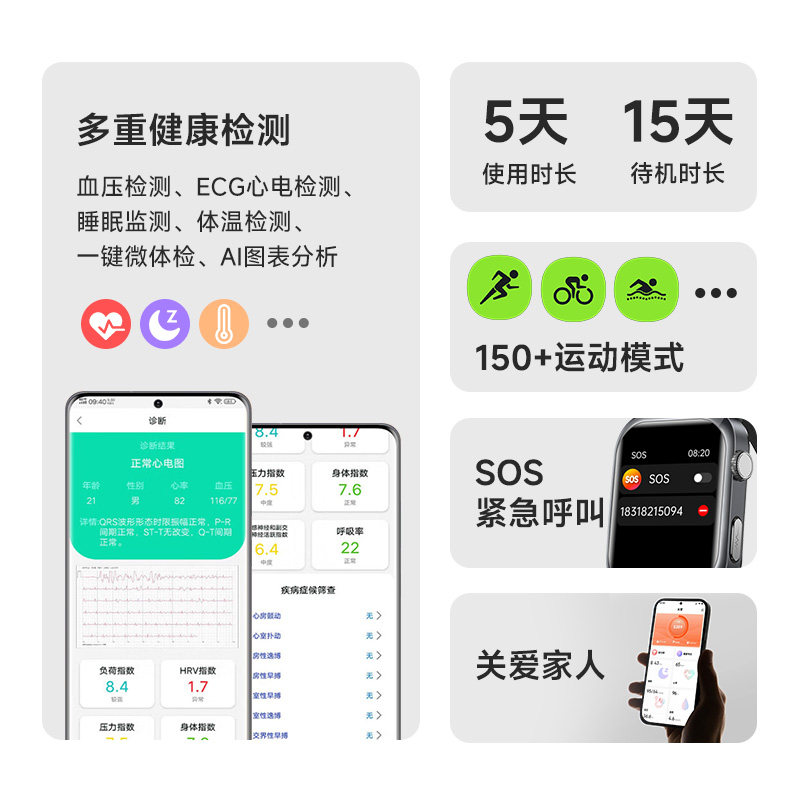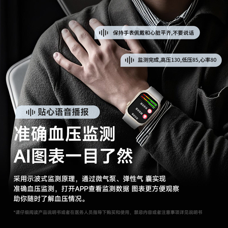 淘血糖准率99%德国AI智能手表控血压血脂尿酸心率睡眠监测运动手环