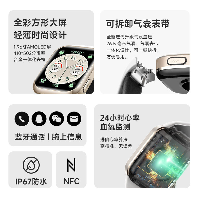天猫KPEP开普2025新款气泵血压智能手环血糖血脂尿酸心率血氧手表健康监测仪