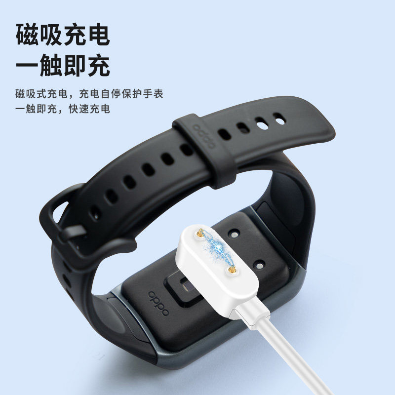OPPO手环2专用磁吸式充电底座,专为OPPO智能运动手环2设计,采用精准磁吸对位技术,轻轻一放即可自动吸附充电,稳固便捷,告别插拔烦恼。充电线配备USB-A接口,兼容多数电源适配器与电脑端口,即插即用。底座与手环接触点经过优化,导电高效稳定,确保快速安全充电。小巧轻便的设计,便于携带,居家、办公、出行皆宜。该充电底座仅适用于OPPO手环2,确保最佳兼容性与充电效率,是延长手环续航的理想配件,让智能运动生活更省心无忧。