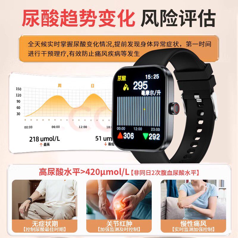 德国技术打造的“三高监测智能手环仪”是一款集血糖、尿酸、血压、血脂及心率监测于一体的创新穿戴设备。采用无创免针检测技术,通过高精度生物传感器实现全天候健康数据采集,告别传统采血痛苦。手环融合先进算法与医疗级精度,实时分析多项关键指标,数据同步至手机APP,便于长期追踪与健康管理。轻巧时尚设计,防水耐用,适合日常佩戴。尤其适合中老年人及慢性病患者,助力早发现、早干预,提升生活质量。凭借德国严谨工艺与智能科技结合,这款手环成为现代家庭健康监护的理想之选,开启无感监测新时代。