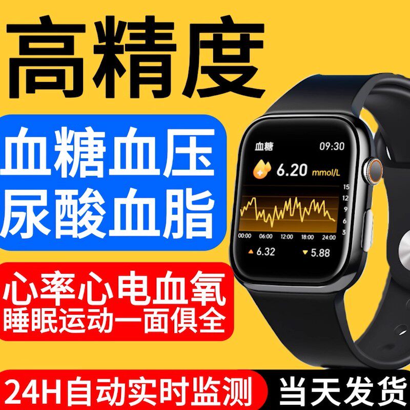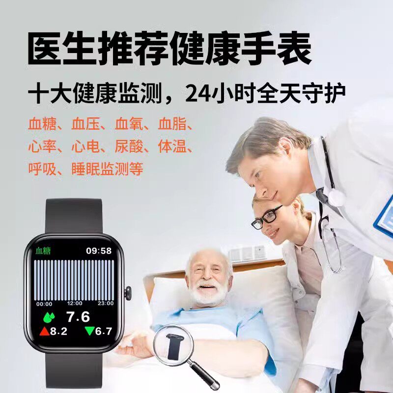 淘血糖准率99%德国AI智能手表控血压血脂尿酸心率睡眠监测运动手环