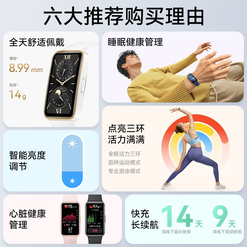 天猫【顺丰速发】华为手环9NFC版时尚新款智能运动手表心率失常血氧睡眠监测运动防水游泳健身男女官方旗舰正品