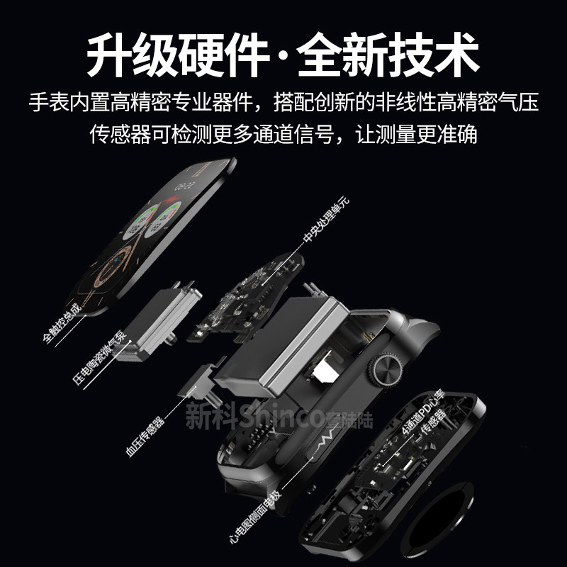 天猫血压首选丨新科shinco高精准气泵健康监测手表心率ECG心电图血糖情绪跟踪评估气囊睡眠体温血氧测量智能手环