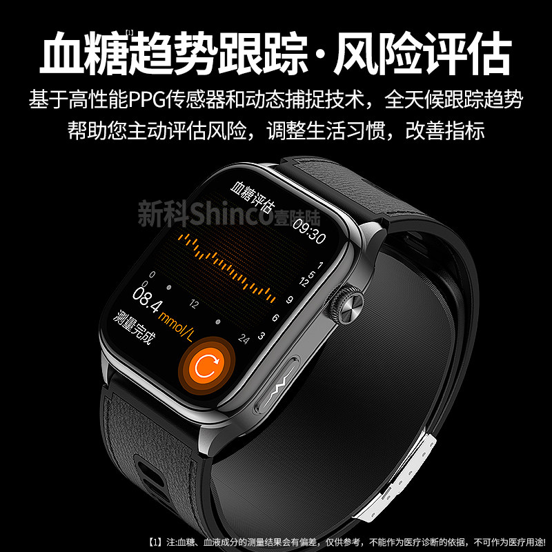 淘血糖准率99%德国AI智能手表控血压血脂尿酸心率睡眠监测运动手环
