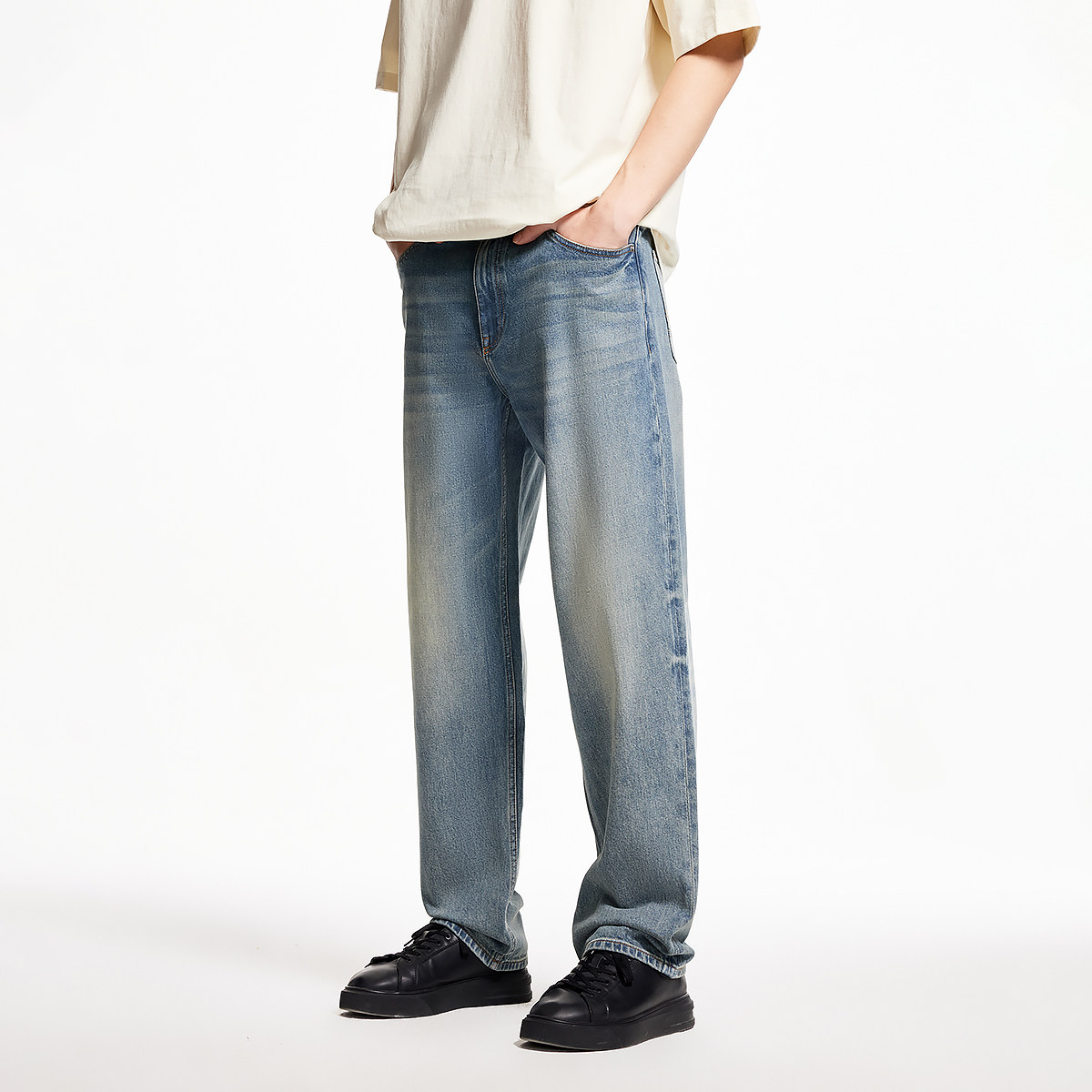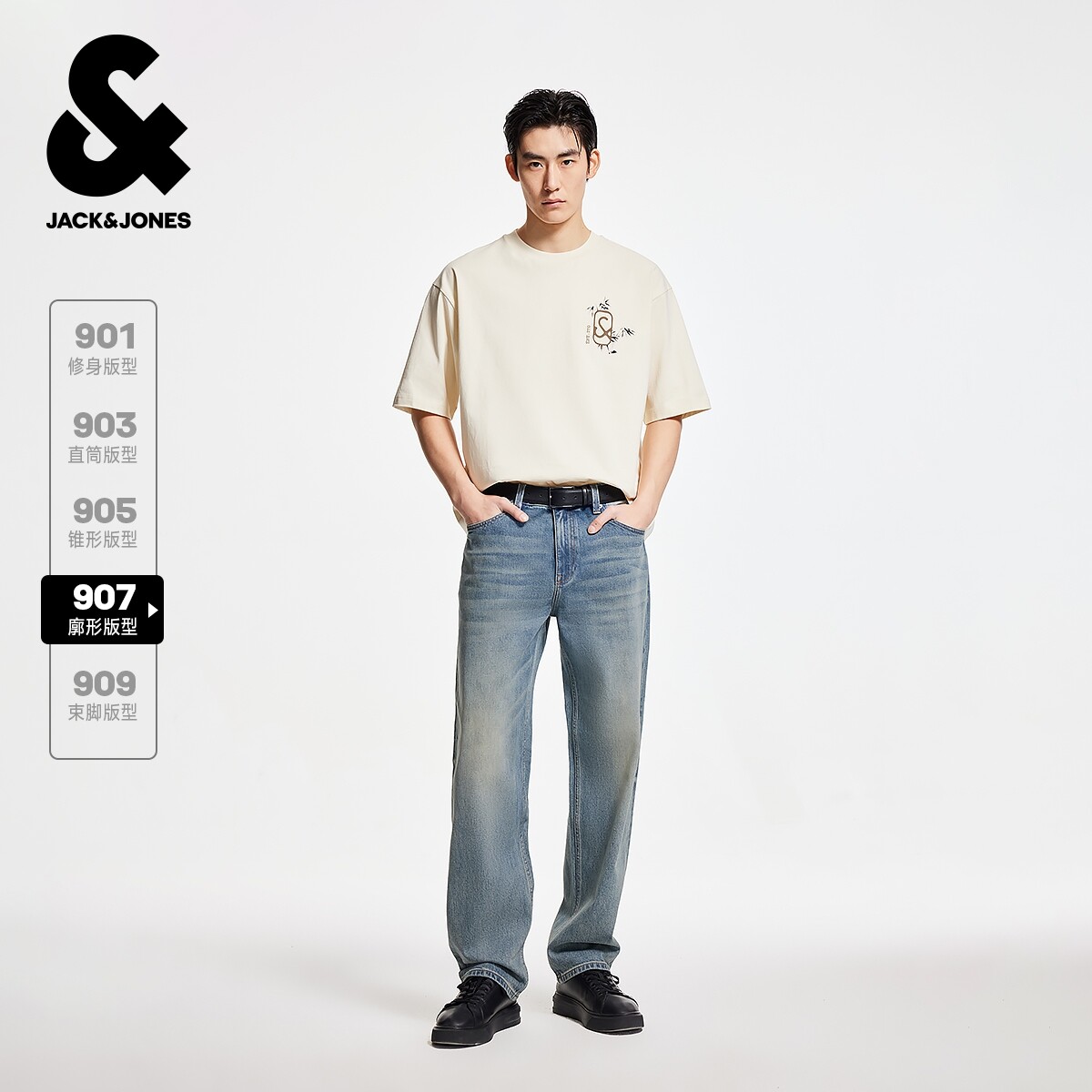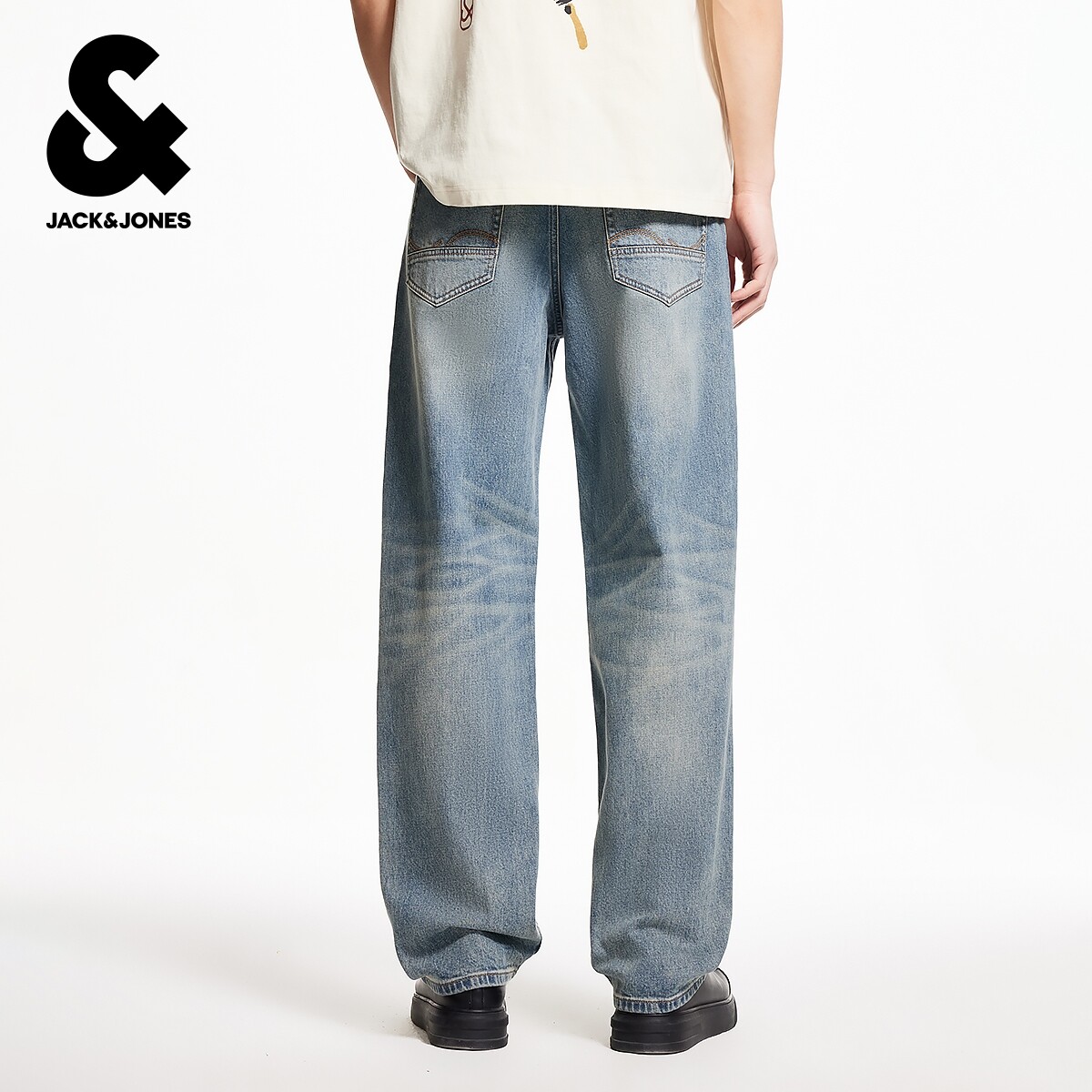 淘宝tj区绫致杰克琼斯男夏潮时尚猫须水洗个性做旧字母百搭廓形牛仔裤