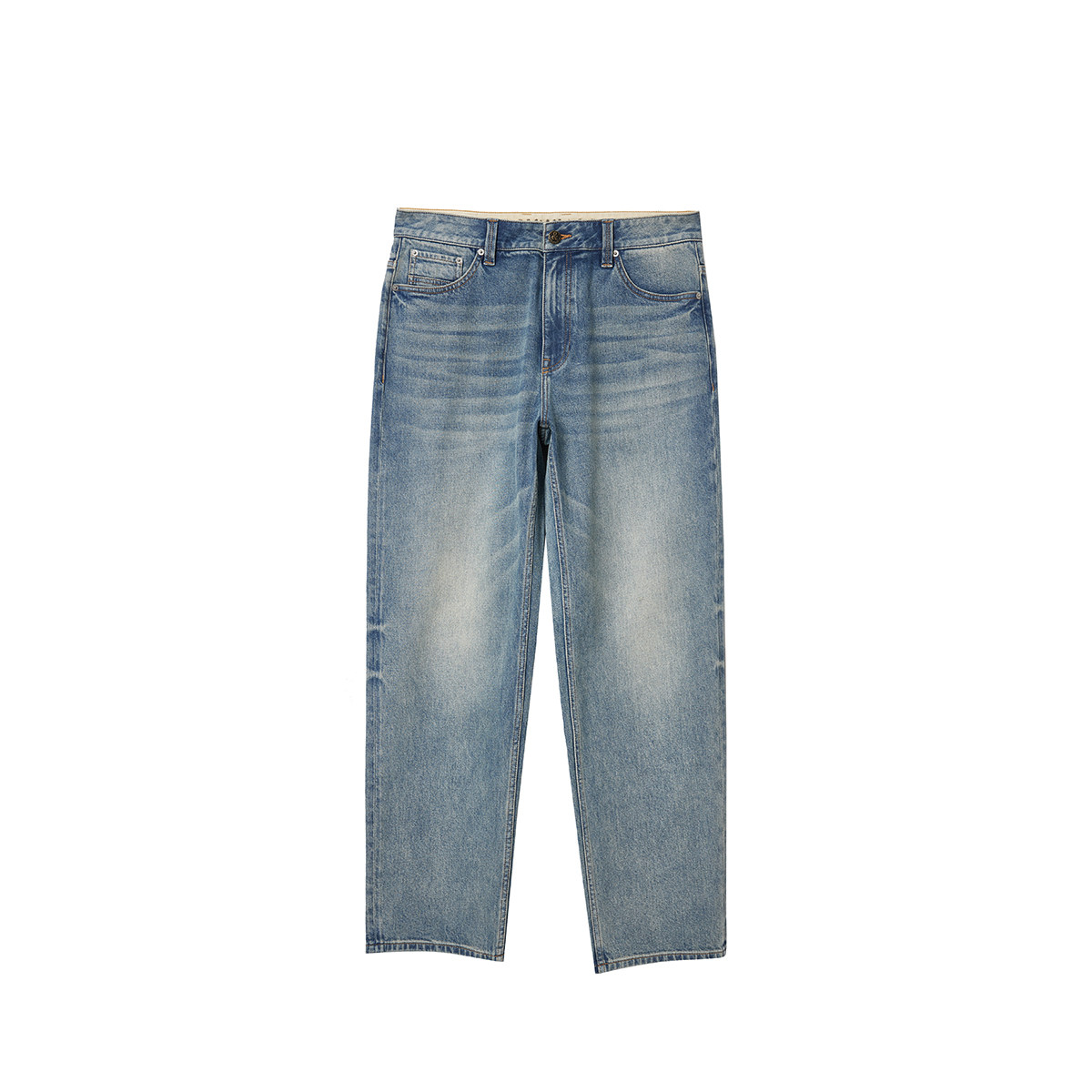 准者直筒牛仔裤男士春季新款加绒保暖复古潮流运动宽松通勤长裤子