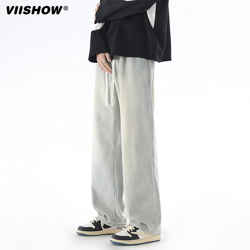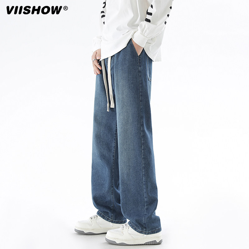 淘宝VIISHOW水洗牛仔裤男夏季新款宽松百搭直筒潮牌cleanfit阔腿裤子