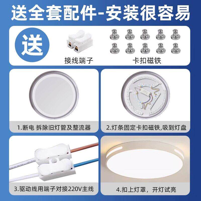 淘宝普瑞马蹄形LED吸顶灯替换灯芯全光谱超亮卧室吊扇灯三色圆形灯盘