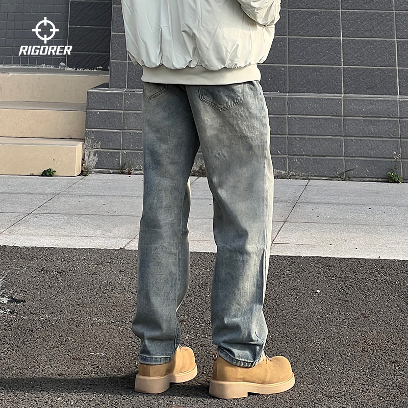 Entong美式潮牌cleanfit设计感牛仔裤男生宽松直筒百搭休闲长裤子