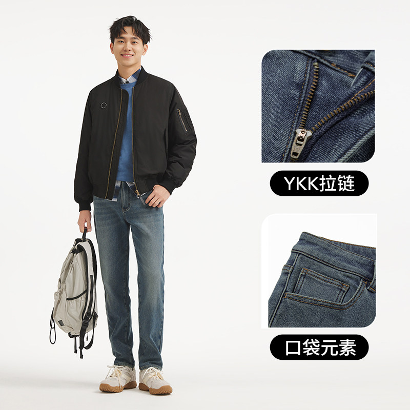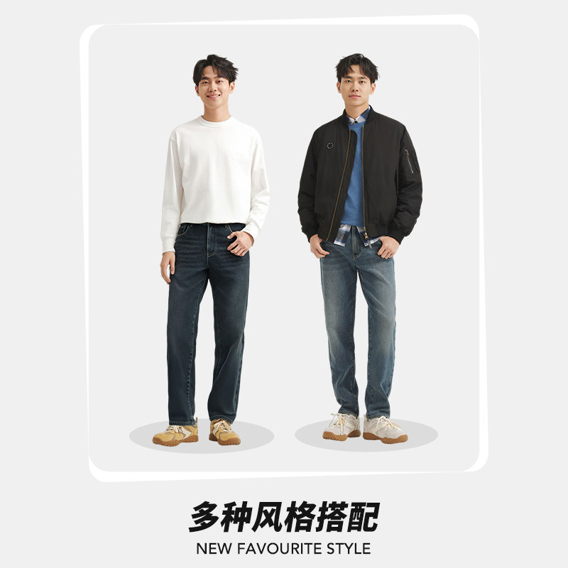 杰克琼斯2026年春季新款男装牛仔裤舒适薄绒廓形长裤时尚百搭裤子