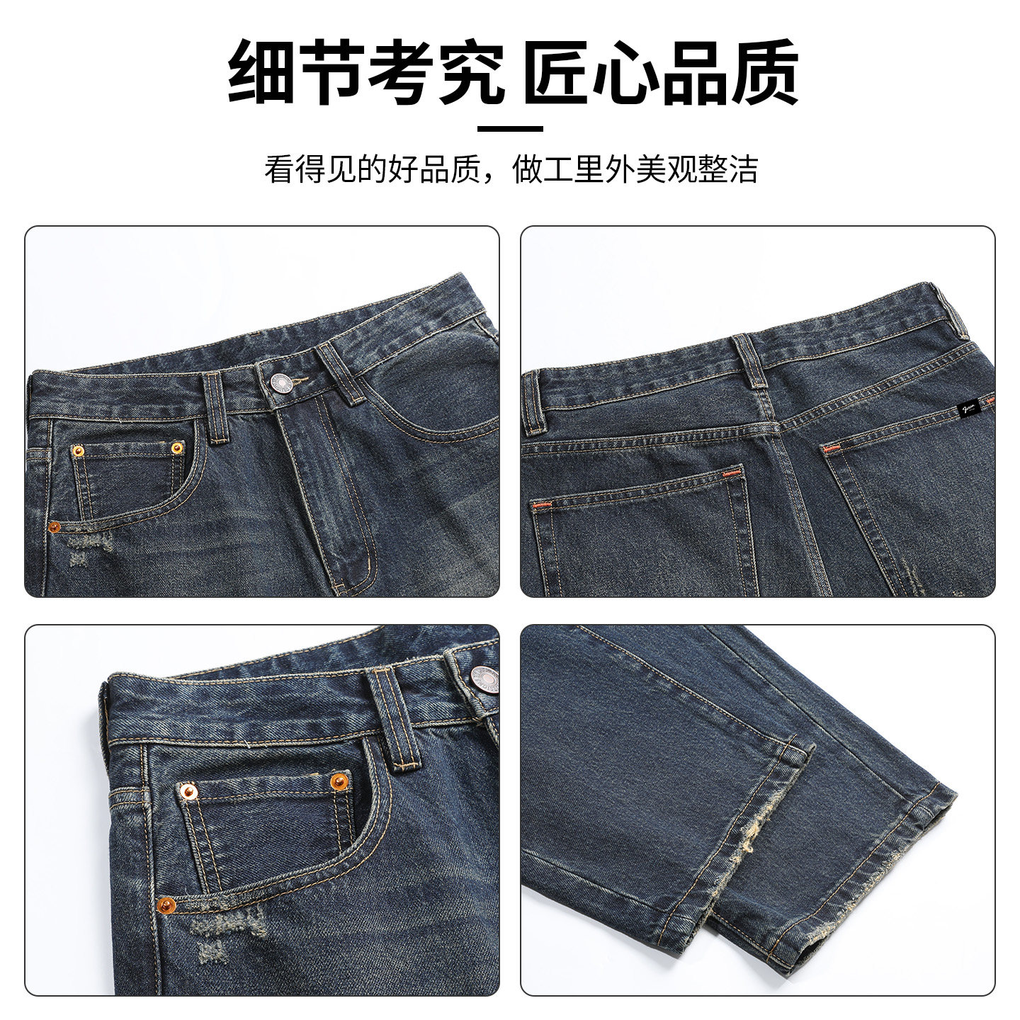 itFIVECM 2025秋季新款男士复古蓝色直筒牛仔裤,融合经典复古美学与现代时尚剪裁,采用优质棉质混纺面料,亲肤透气,穿着舒适。宽松直筒版型设计,巧妙修饰腿型,兼顾休闲与潮流感,轻松驾驭日常通勤或街头穿搭。高腰设计搭配精致金属纽扣与复古水洗工艺,呈现自然做旧质感,彰显个性品味。多口袋实用布局,兼顾美观与功能性。无论是搭配简约T恤还是复古夹克,都能轻松打造型格秋日造型,是追求舒适与风格兼具的男士必备单品。
